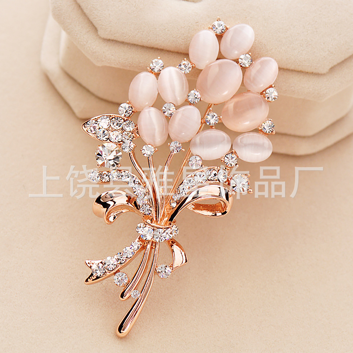 High-end cat's eye diamond-encrusted tulip crystal brooch, cute and unique Japanese-style narcissus brooch accessory, elegant corsage girl