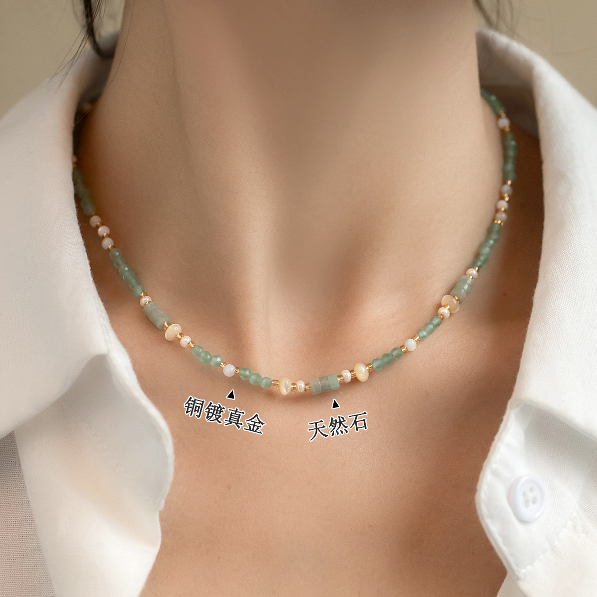 High-end colored beaded necklace for women, light luxury and niche spring and summer dopamine freshwater pearl collarbone chain necklace wholesale