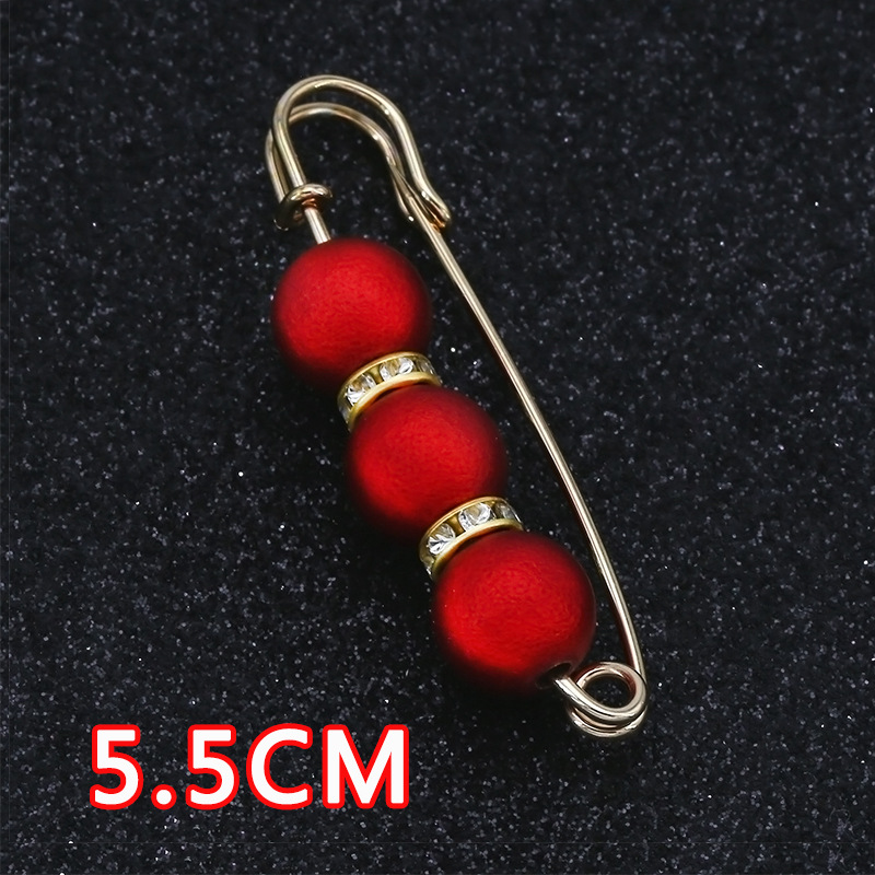 Pin 6# Three Red Pearl Gold Needle, 5.5cm