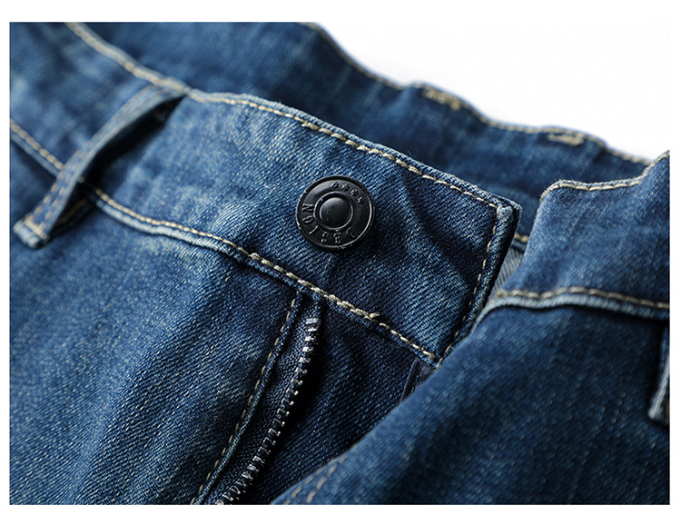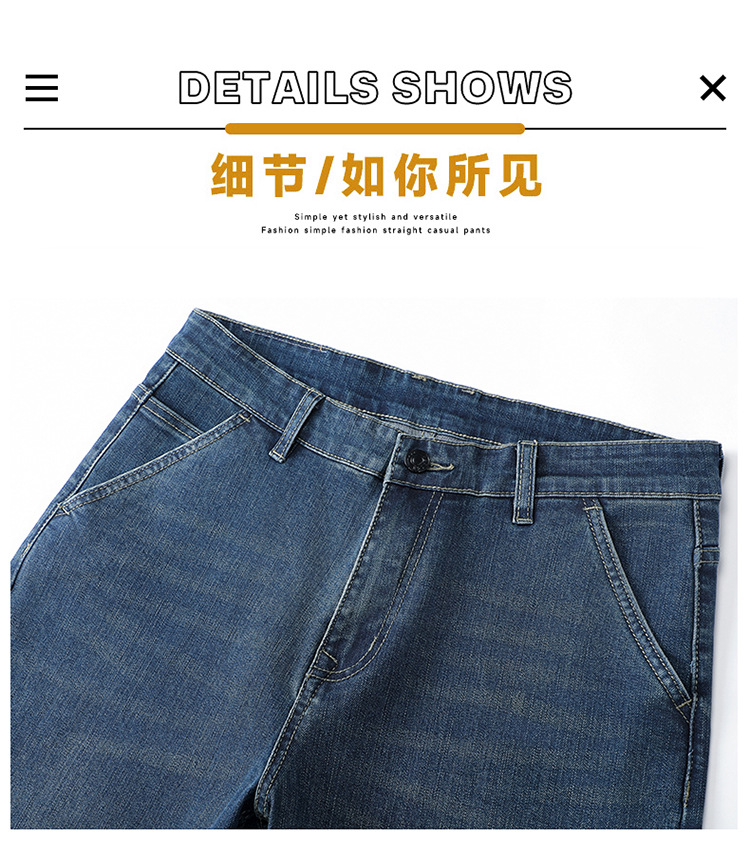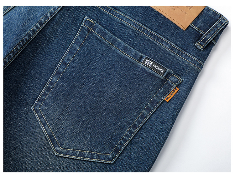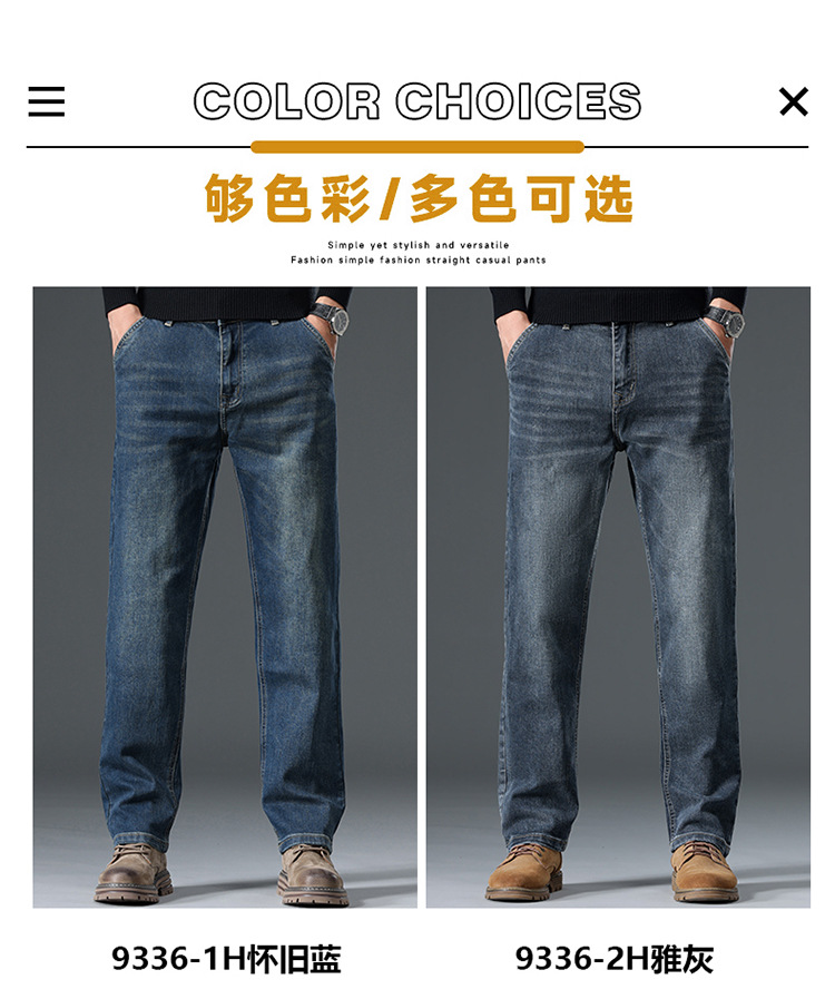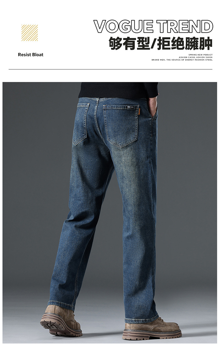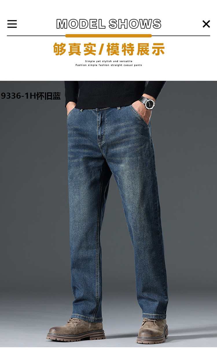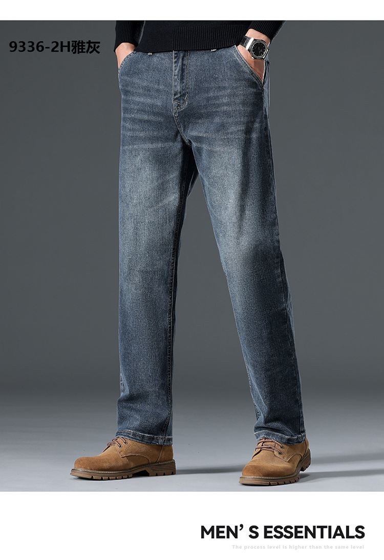 High-end cotton straight-leg jeans with fleece loose, casual and versatile men's trousers for autumn and winter, new stretch casual pants