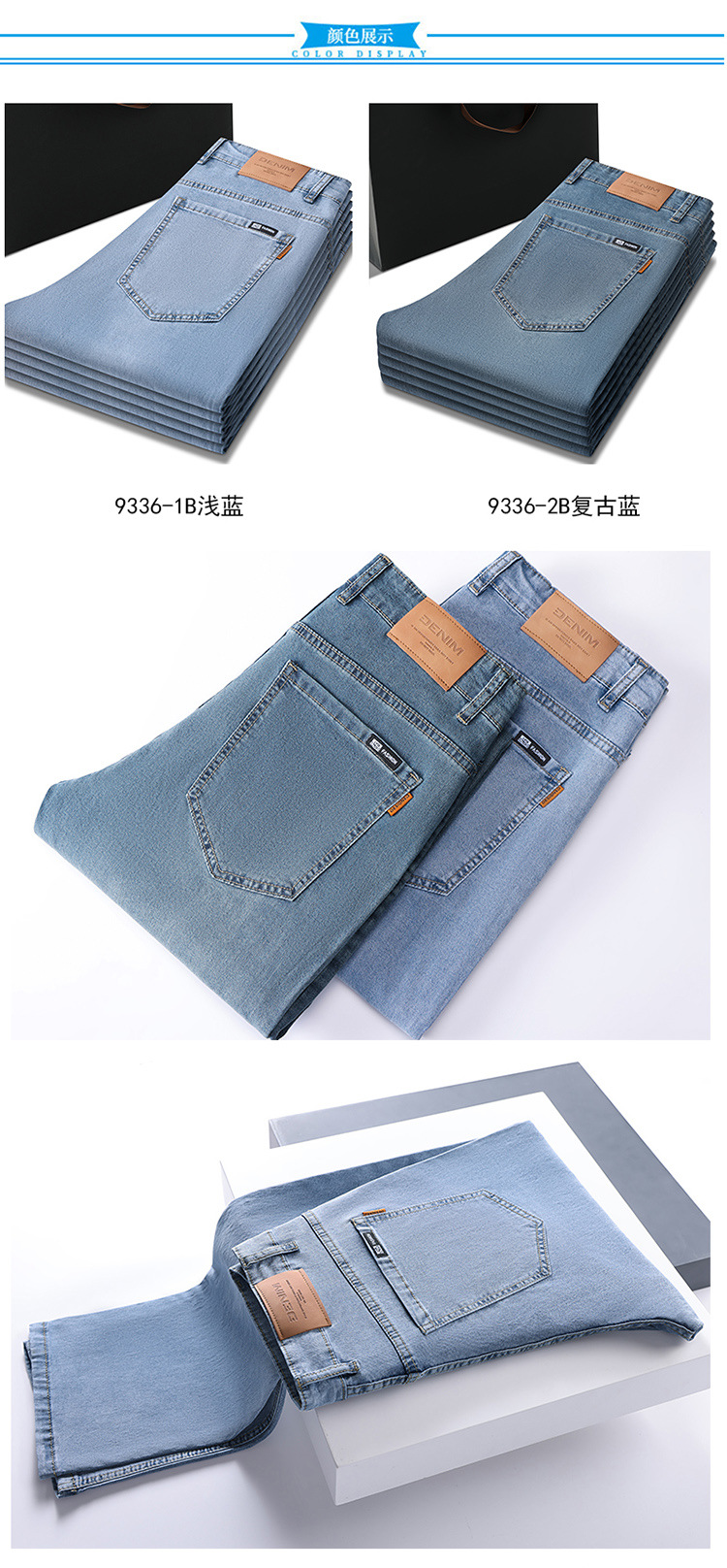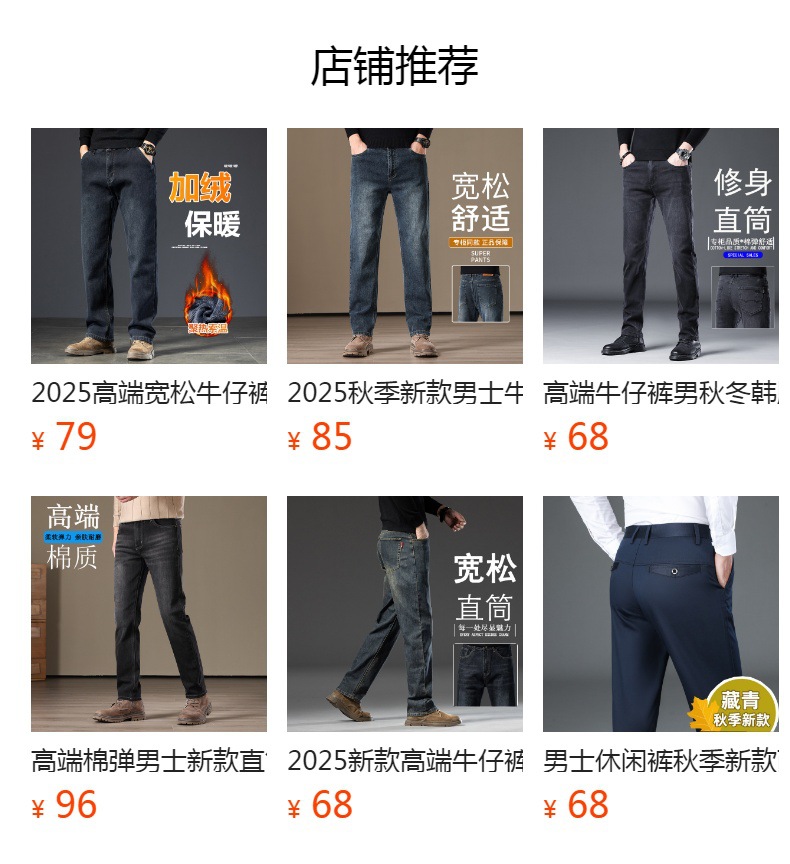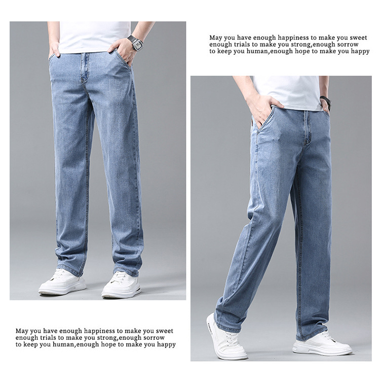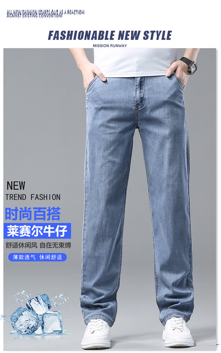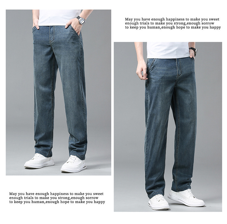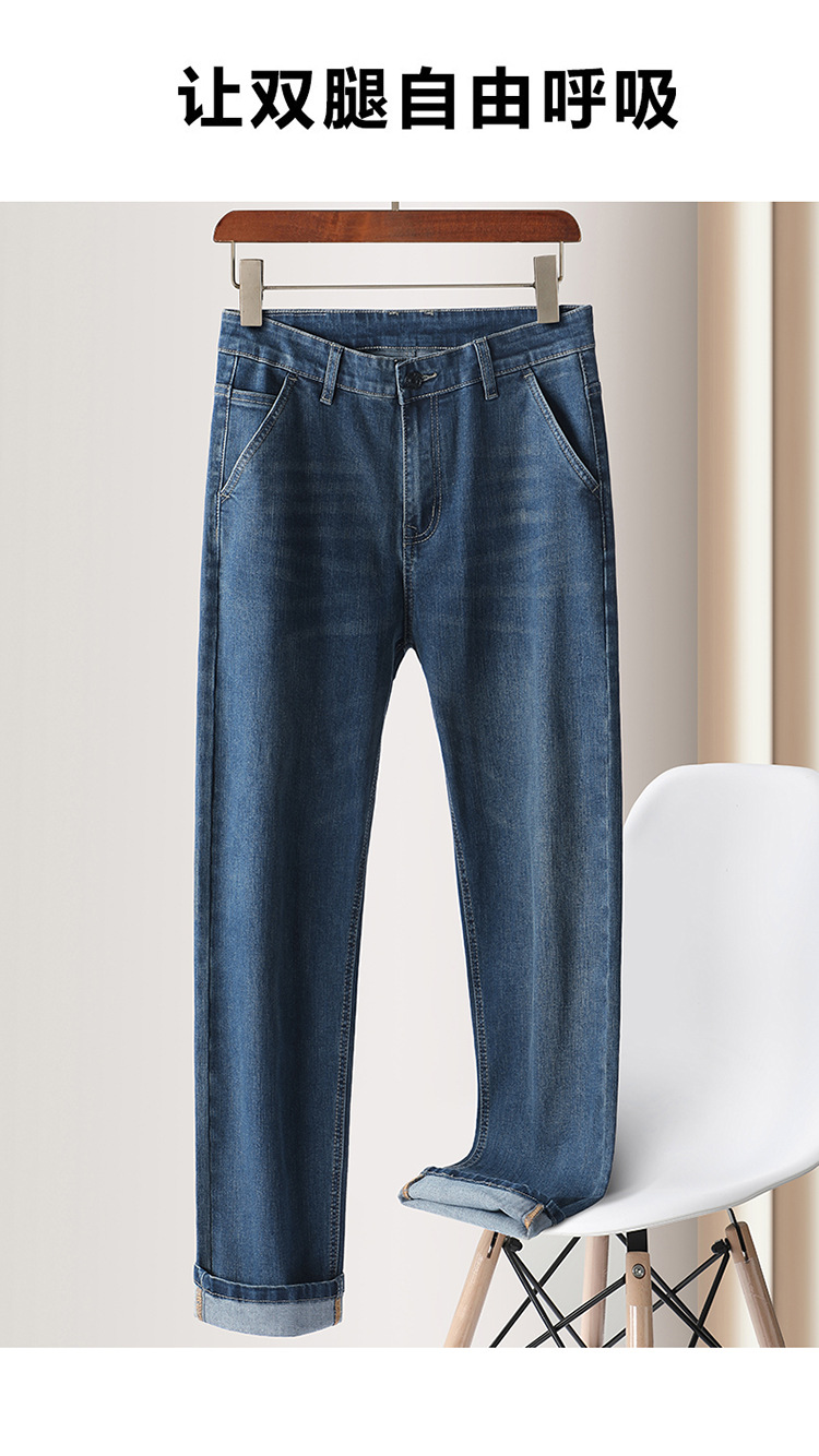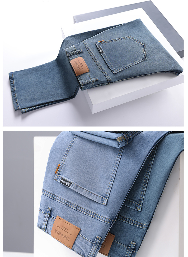 High-end cotton straight-leg jeans with fleece loose, casual and versatile men's trousers for autumn and winter, new stretch casual pants