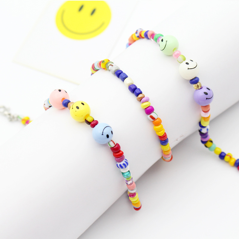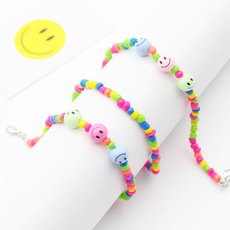 High-end European and American colorful chain for glasses, smiling face glasses, anti-drop lanyard, ins beaded mask chain for women