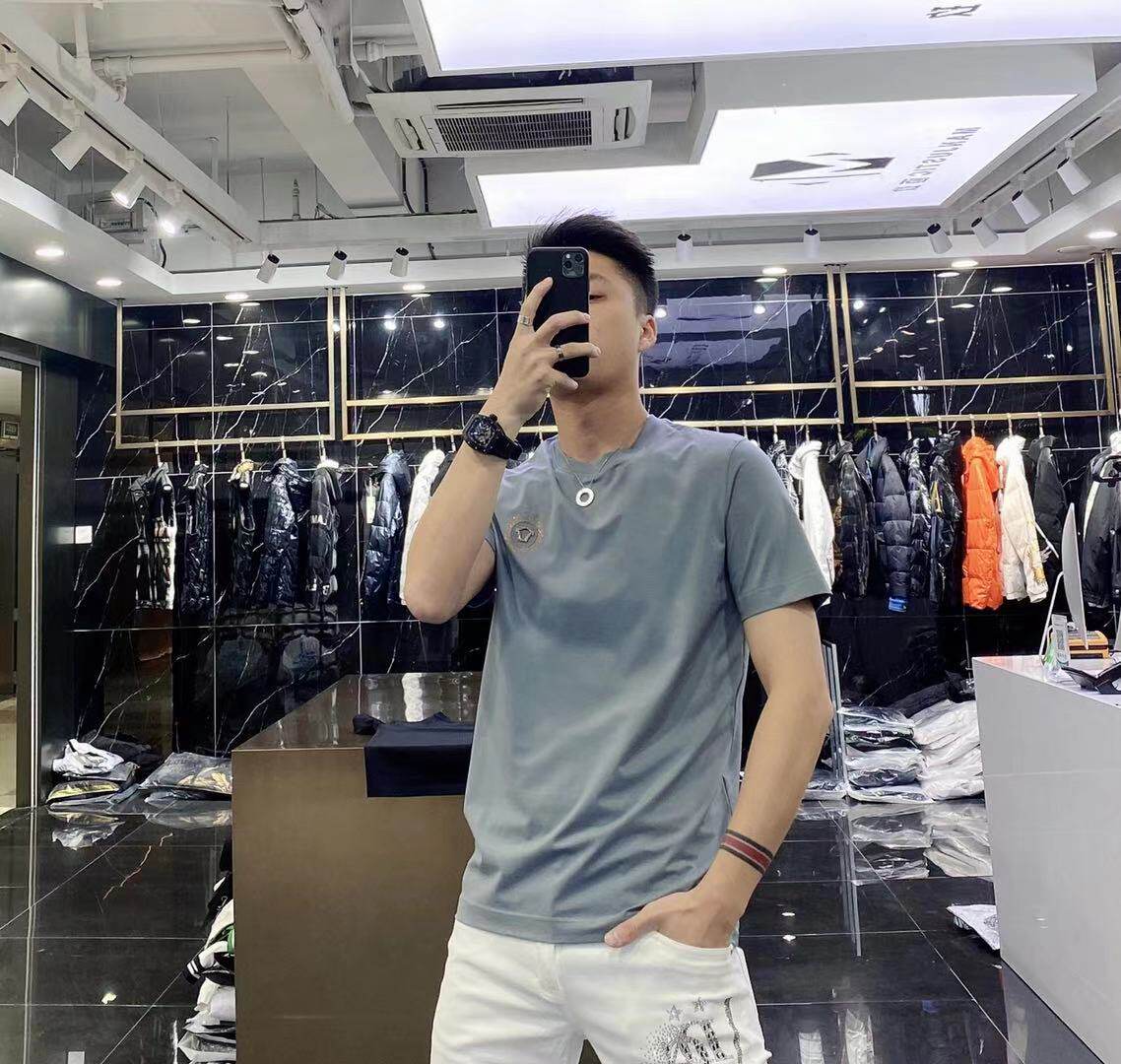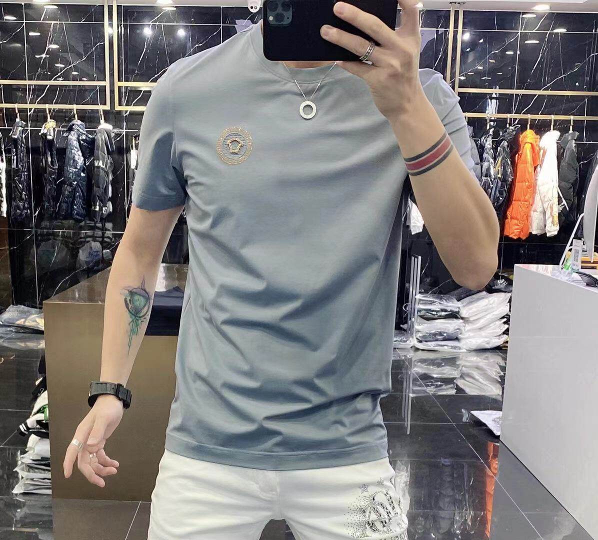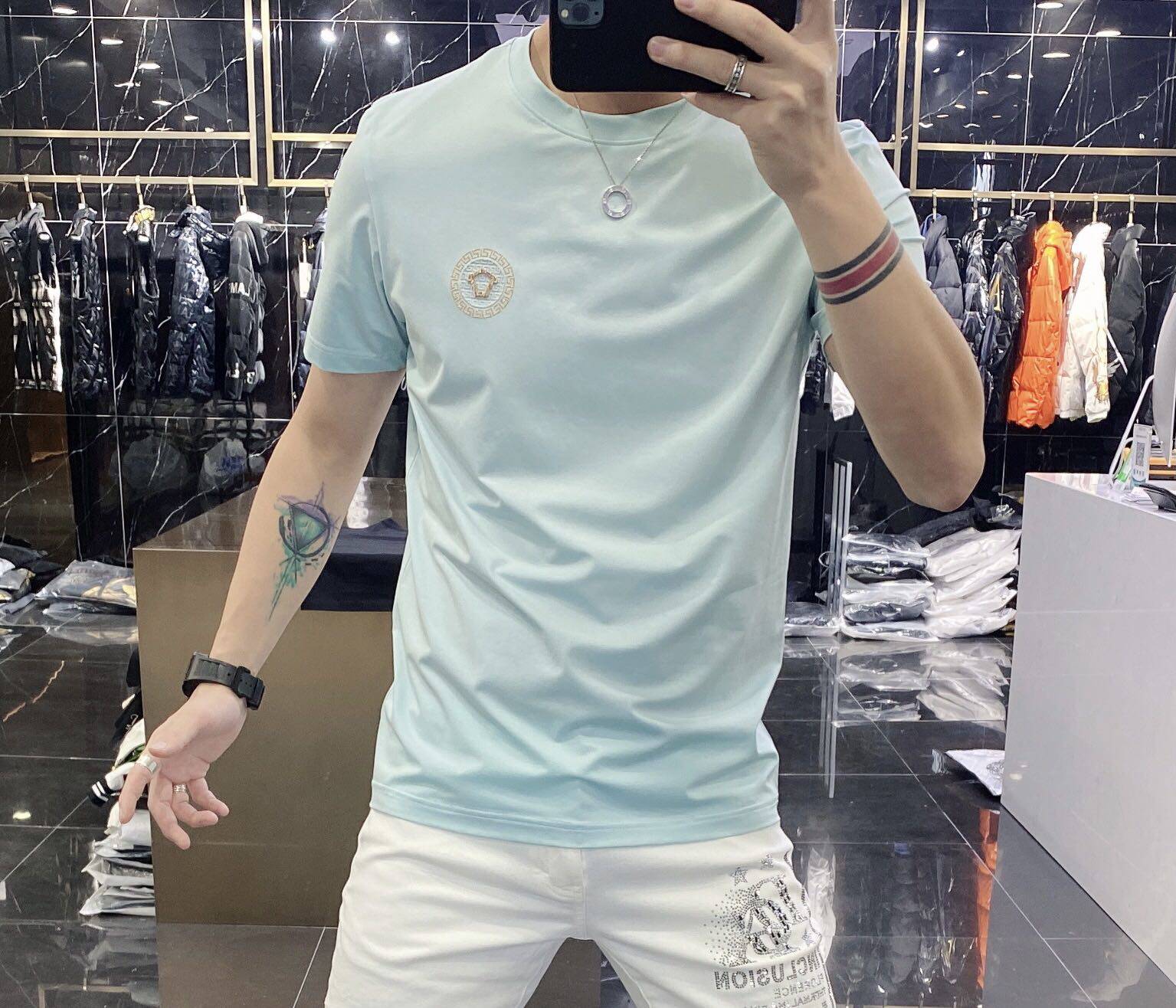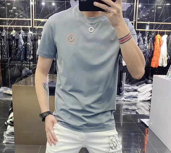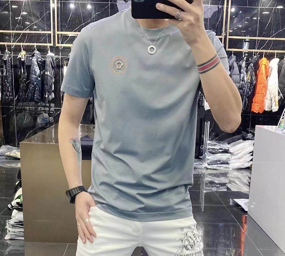 High-end European solid-color T-shirt men's sky blue short-sleeved 2022 trendy men's jade silk half-sleeved cool and versatile base layer