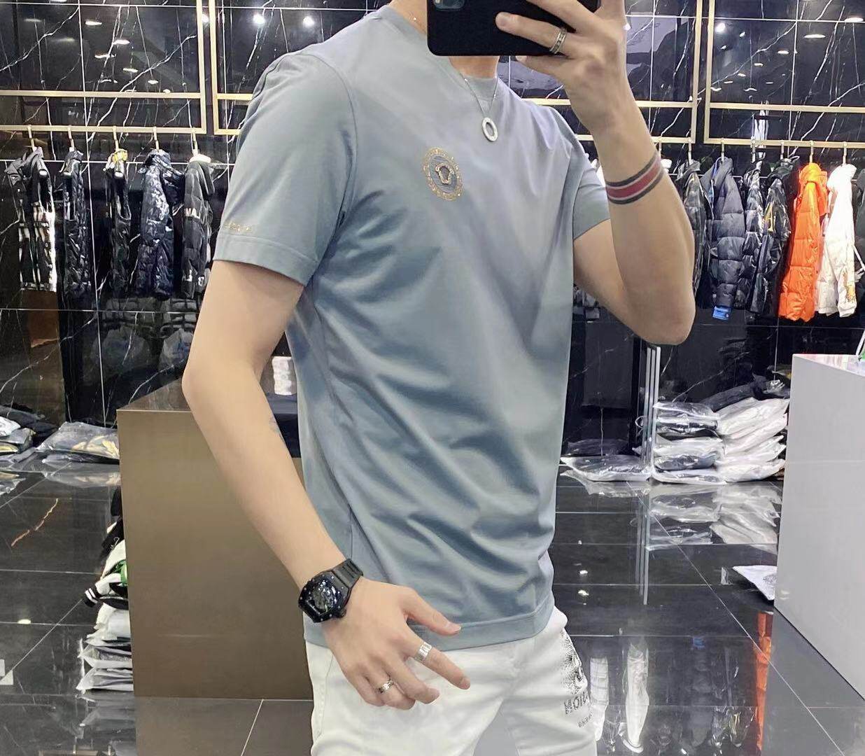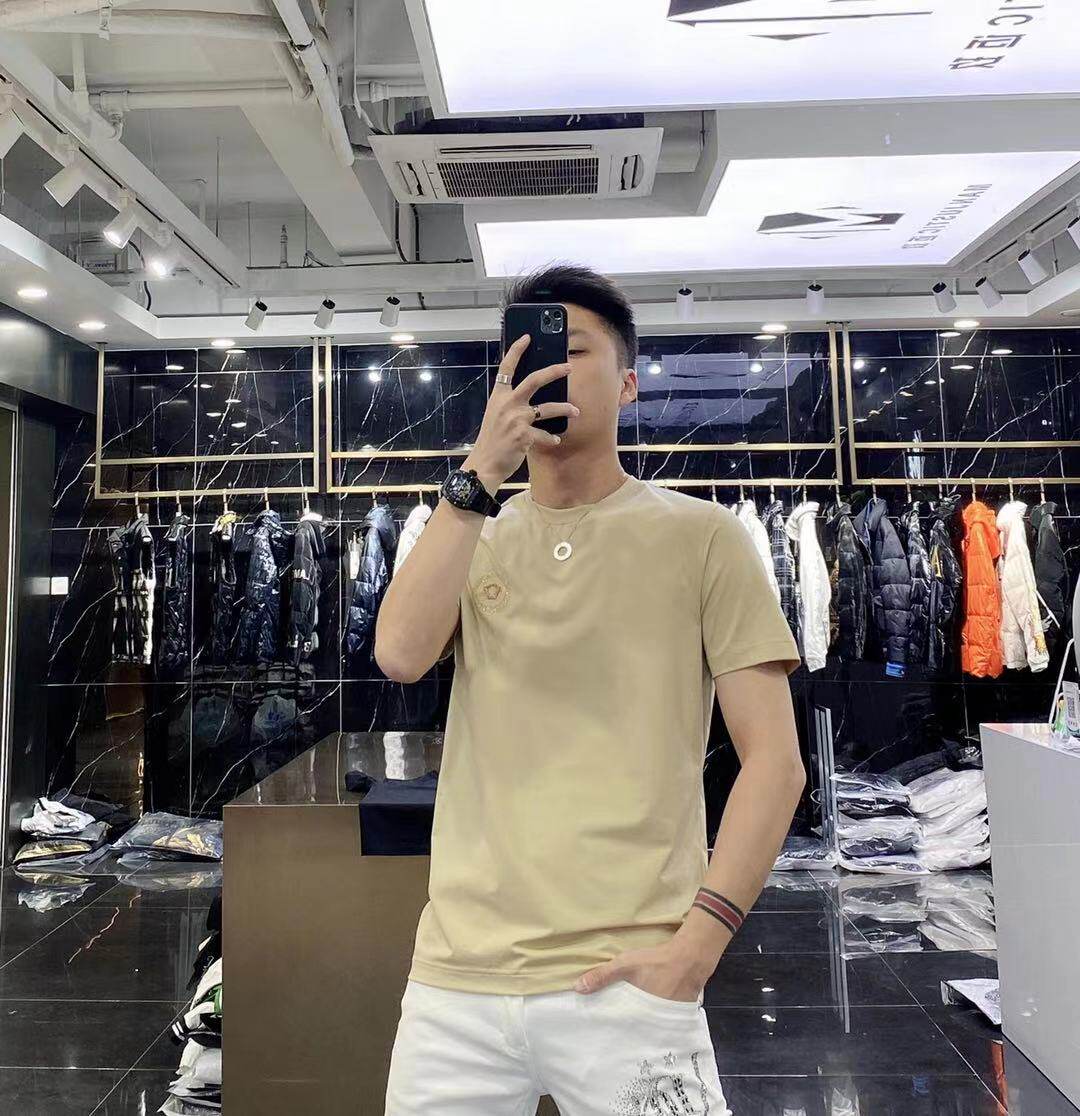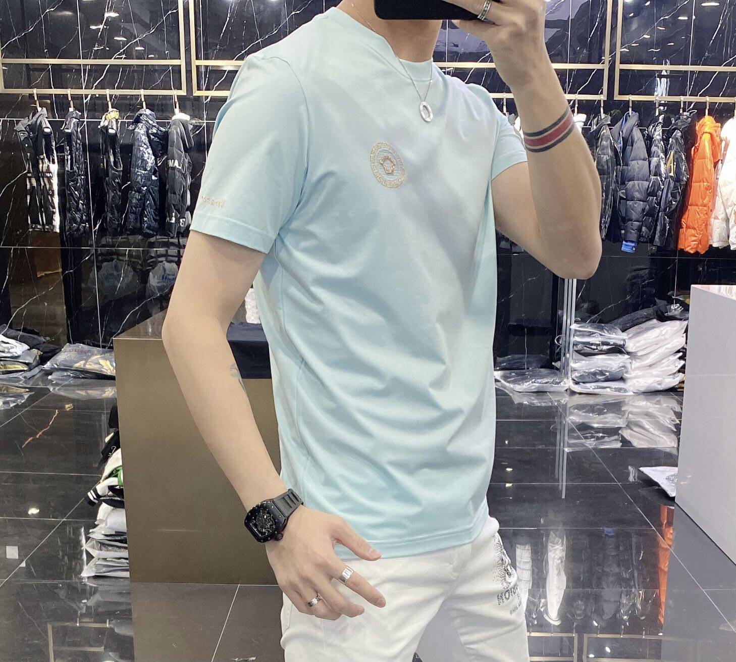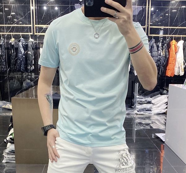 High-end European solid-color T-shirt men's sky blue short-sleeved 2022 trendy men's jade silk half-sleeved cool and versatile base layer