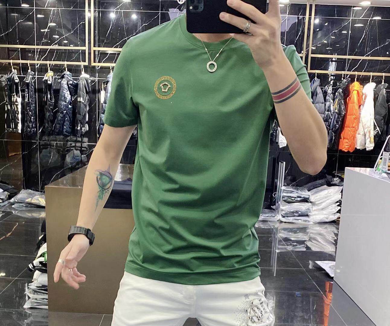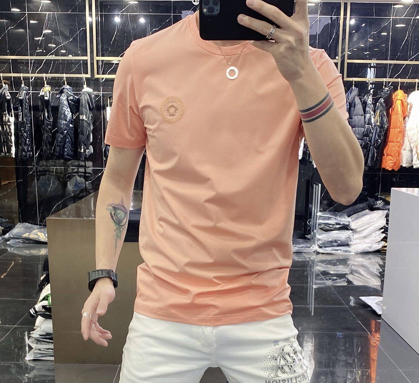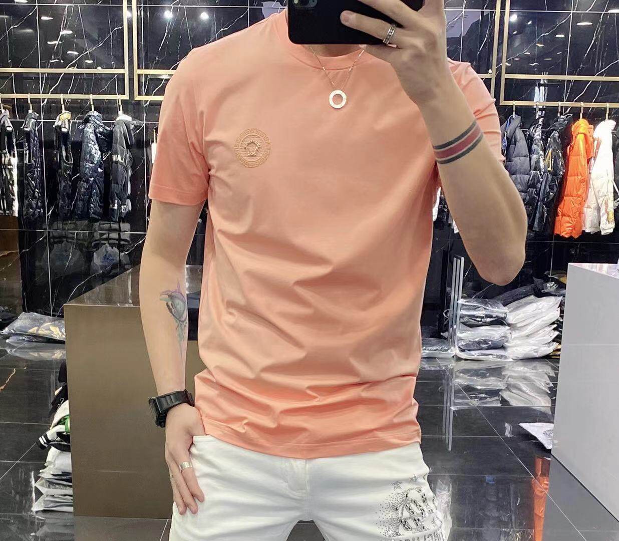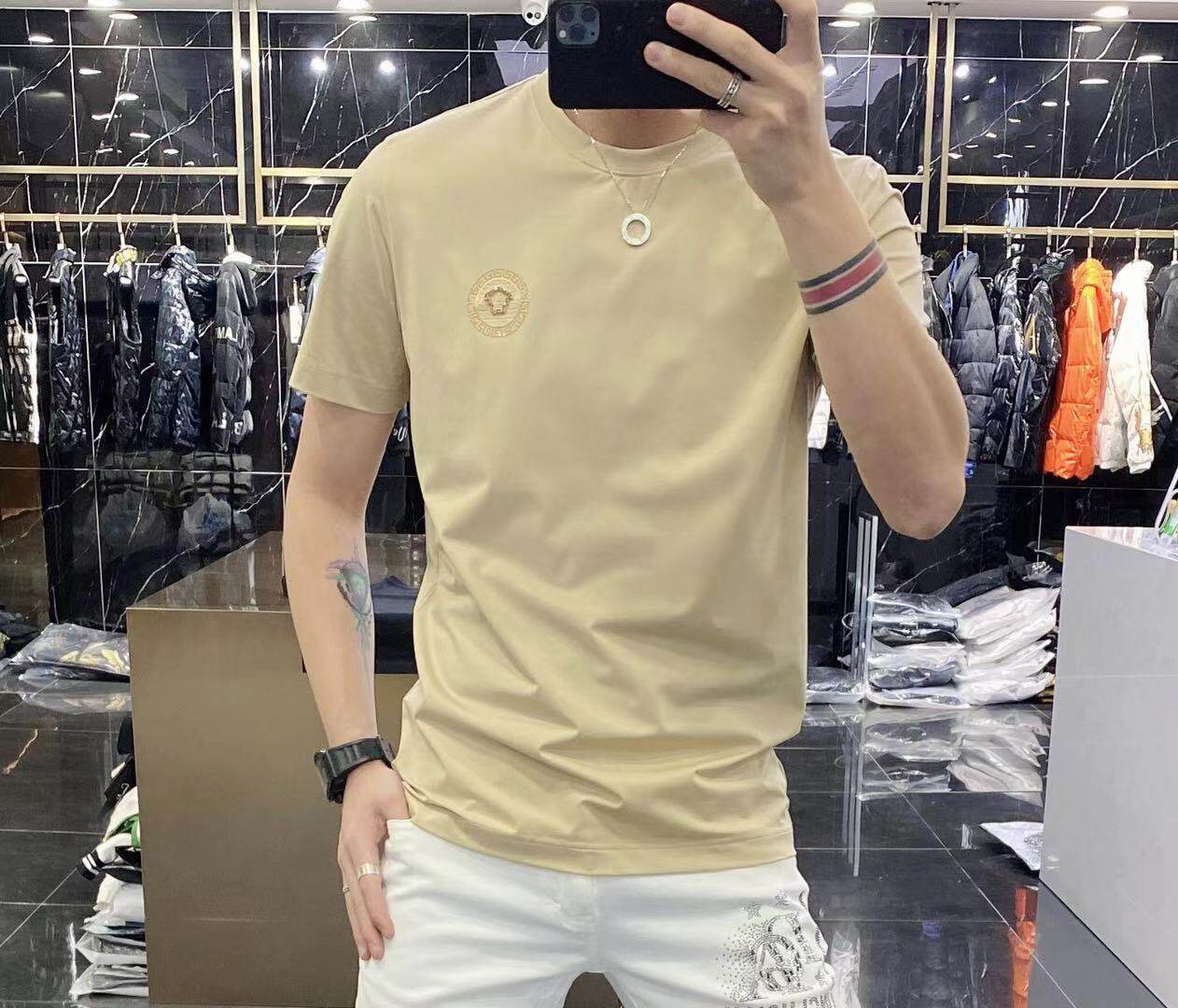 High-end European solid-color T-shirt men's sky blue short-sleeved 2022 trendy men's jade silk half-sleeved cool and versatile base layer