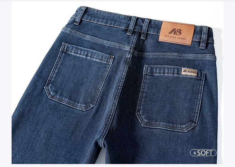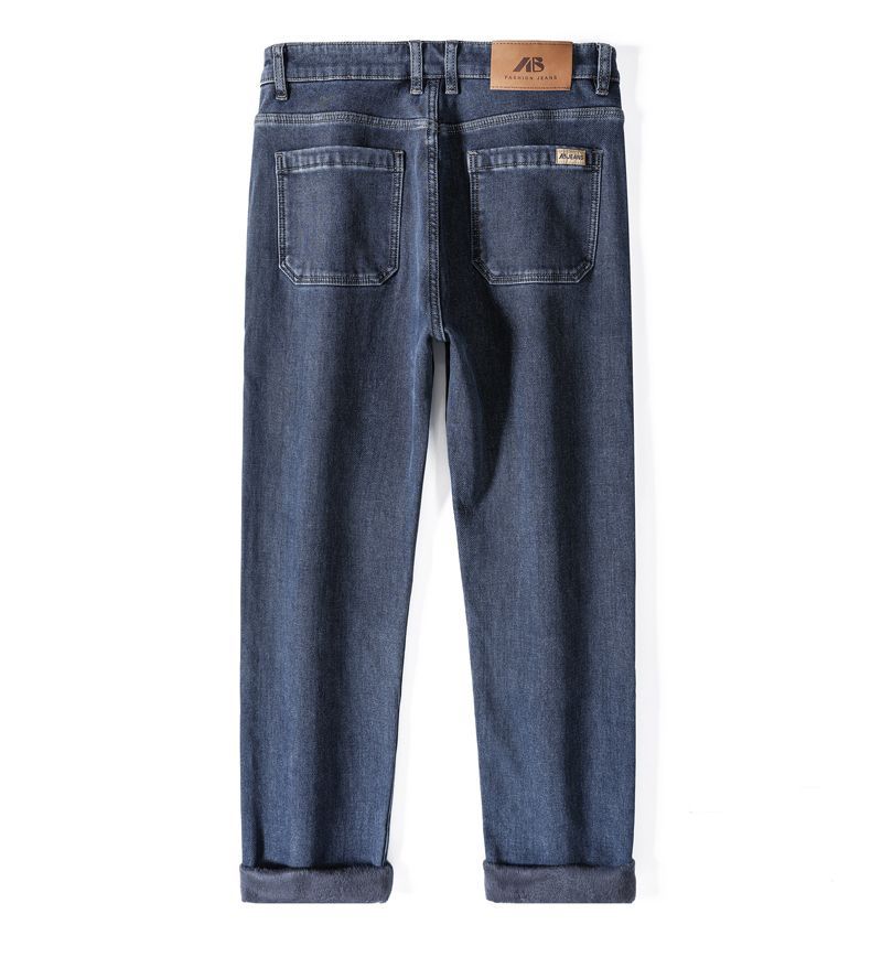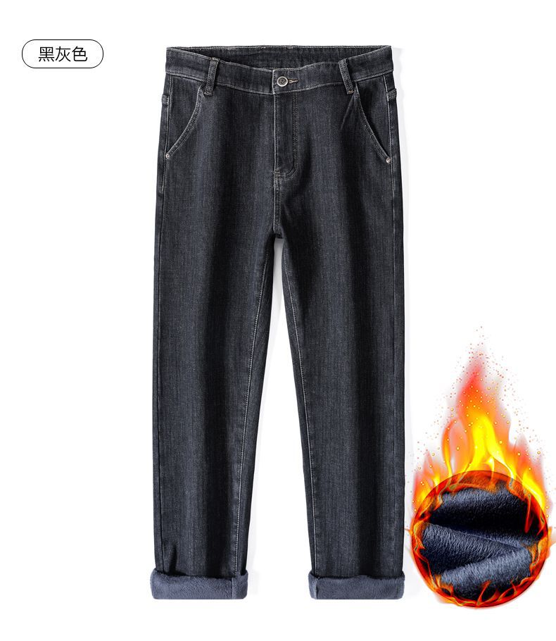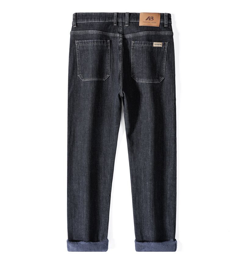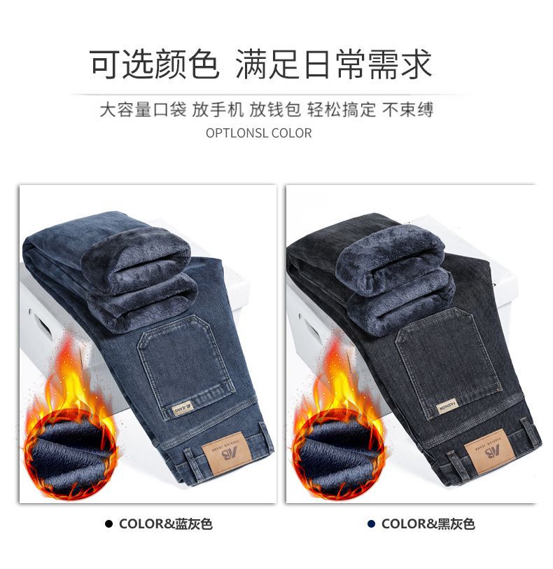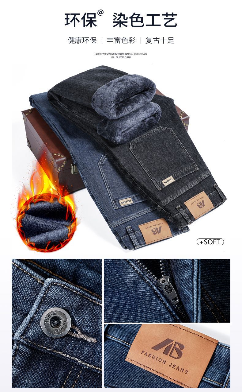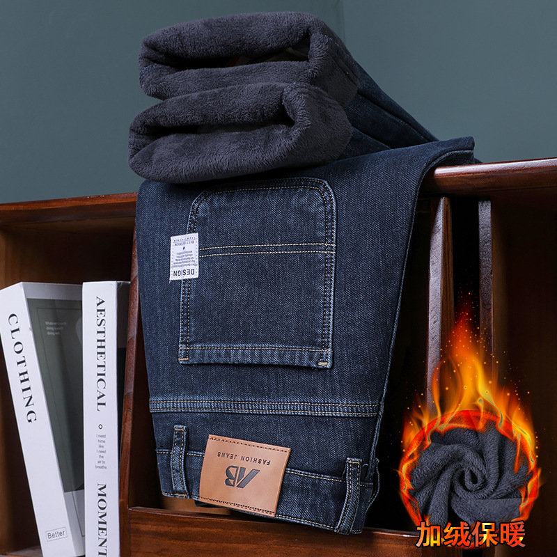 High-end fleece jeans for men 2025 winter, new straight-leg loose and versatile men's pants, thick and warm long pants for men