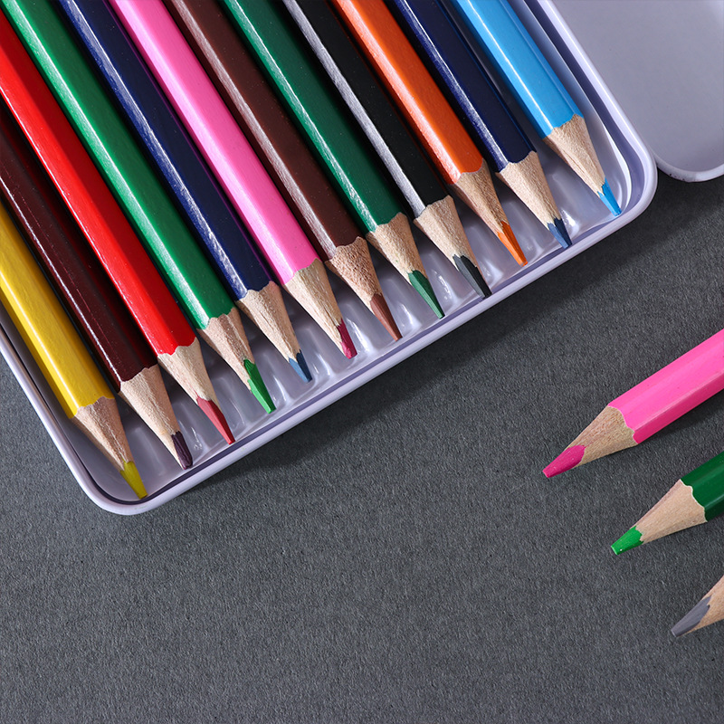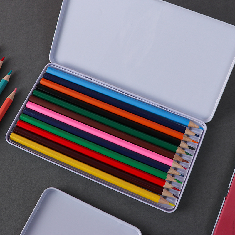High-end iron box 12-color colored pencils, special for primary school students' drawing factory wholesale 12-color lead color art supplies