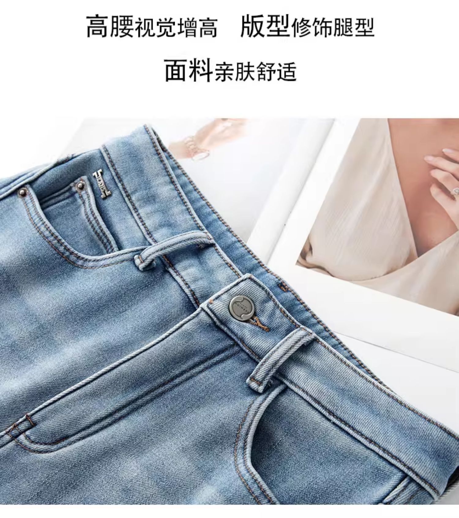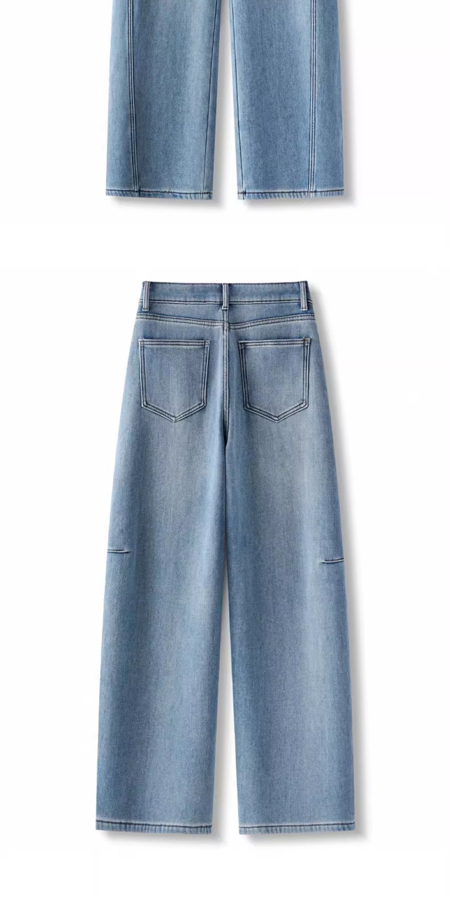 High-end light blue curved-cut jeans for women's autumn and winter 2025, a super popular fleece and thickened retro straight-leg pant