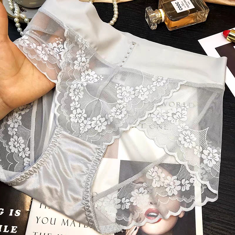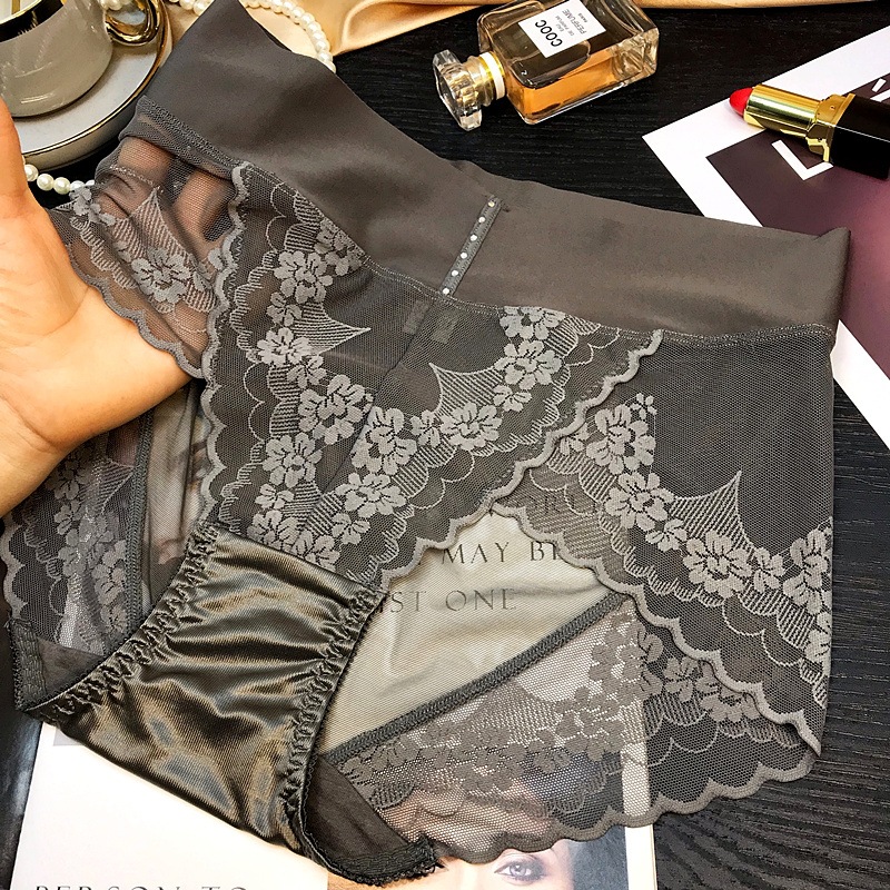 High-end, light luxury lace high-waisted tight-fitting pants for women, large-sized hip-lifting, seamless pure cotton crotch thin sexy triangle pants