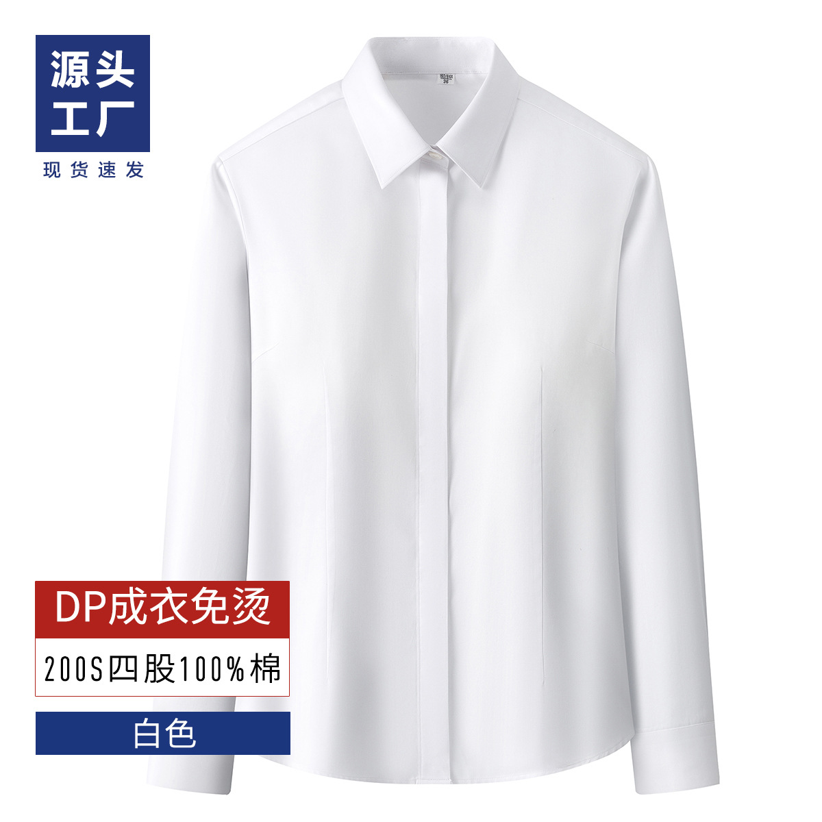 High-end long-sleeved men's shirt, 200S four-ply all-cotton ready-to-wear white shirt without ironing, men's corporate and bank work uniforms