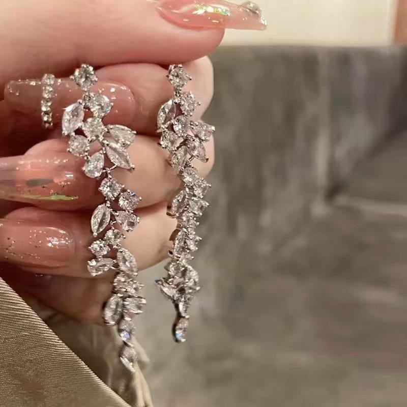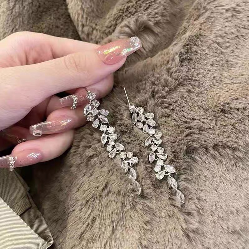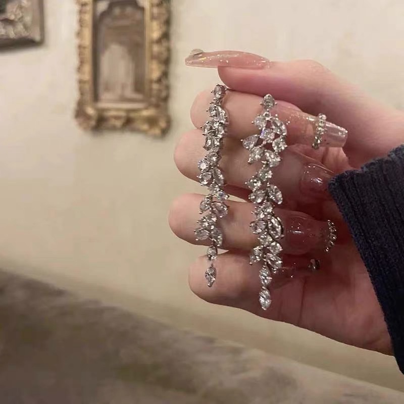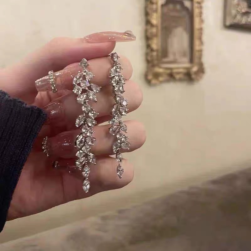 High-end tassel leaf women's niche face-showing small dress earrings, exaggerated and elegant bridal earrings, light luxury earrings