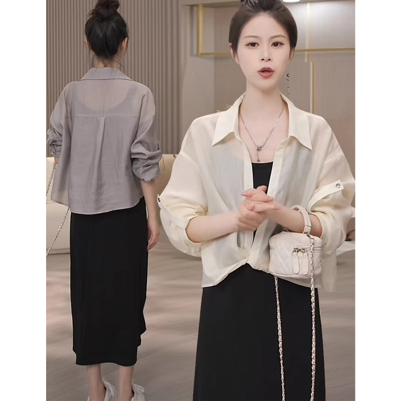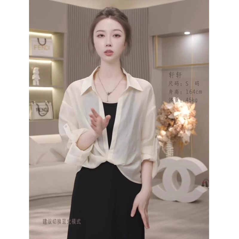 High-end tencel shirt, women's long-sleeved shirt, summer petite cotton and linen top, short sun-protective clothing, cardigan, thin coat