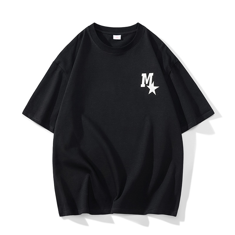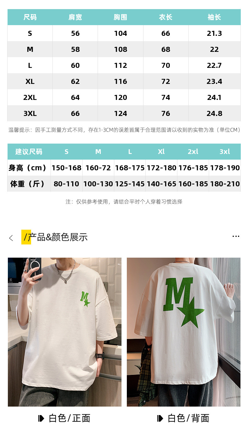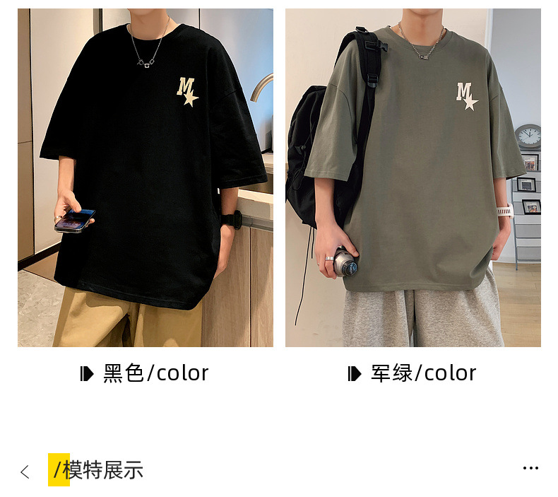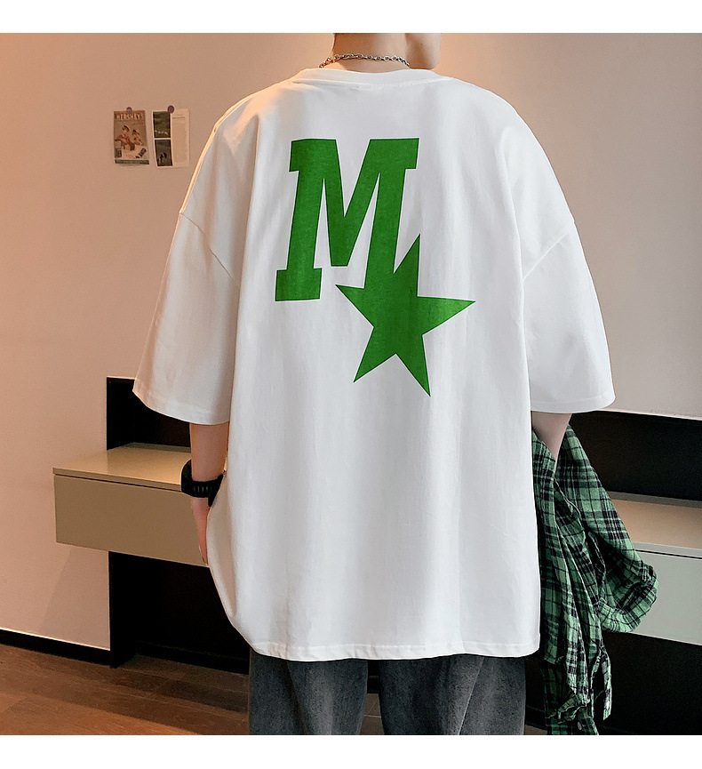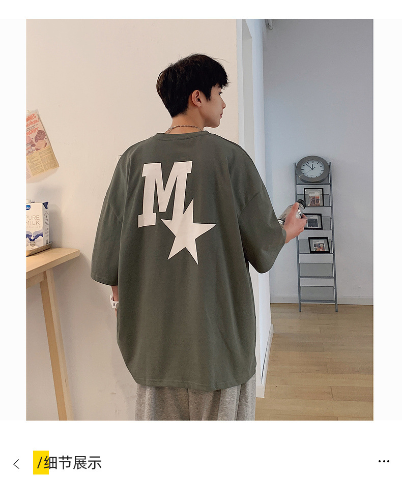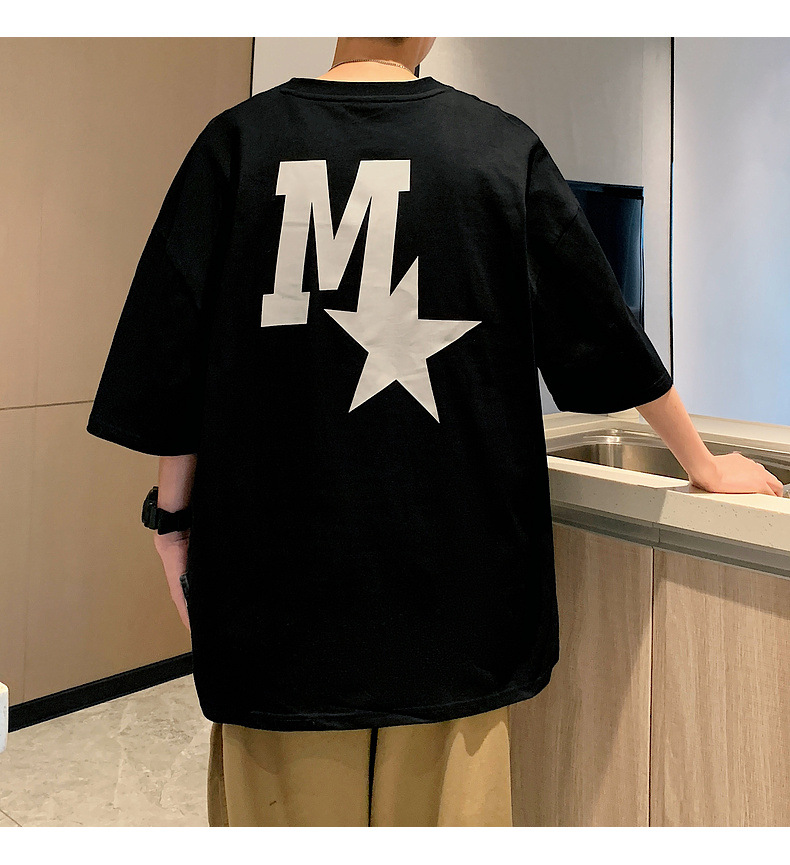 High-quality men's T-shirt, summer Hong Kong-style loose pure cotton short-sleeved T-shirt, couple style, simple and versatile five-quarter sleeve top