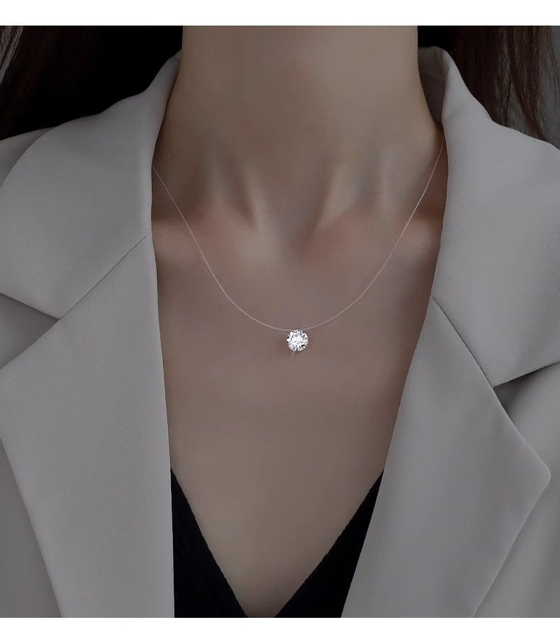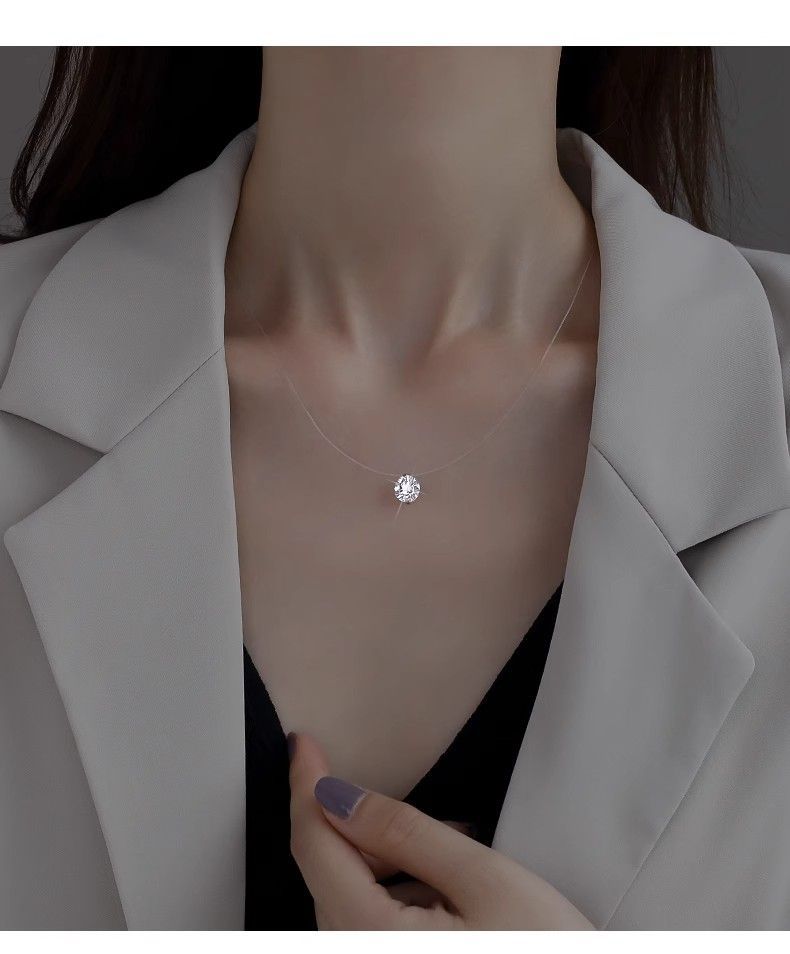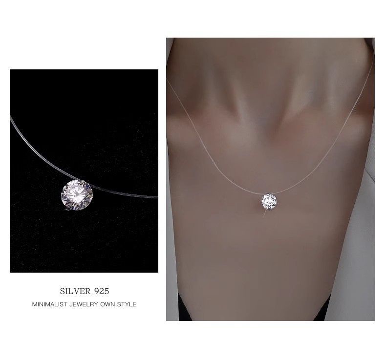 【 High Quality 】 Mermaid's Tear Invisible Necklace, Zircon Pure Silver Collarbone Chain, a Valentine's Day gift for your girlfriend