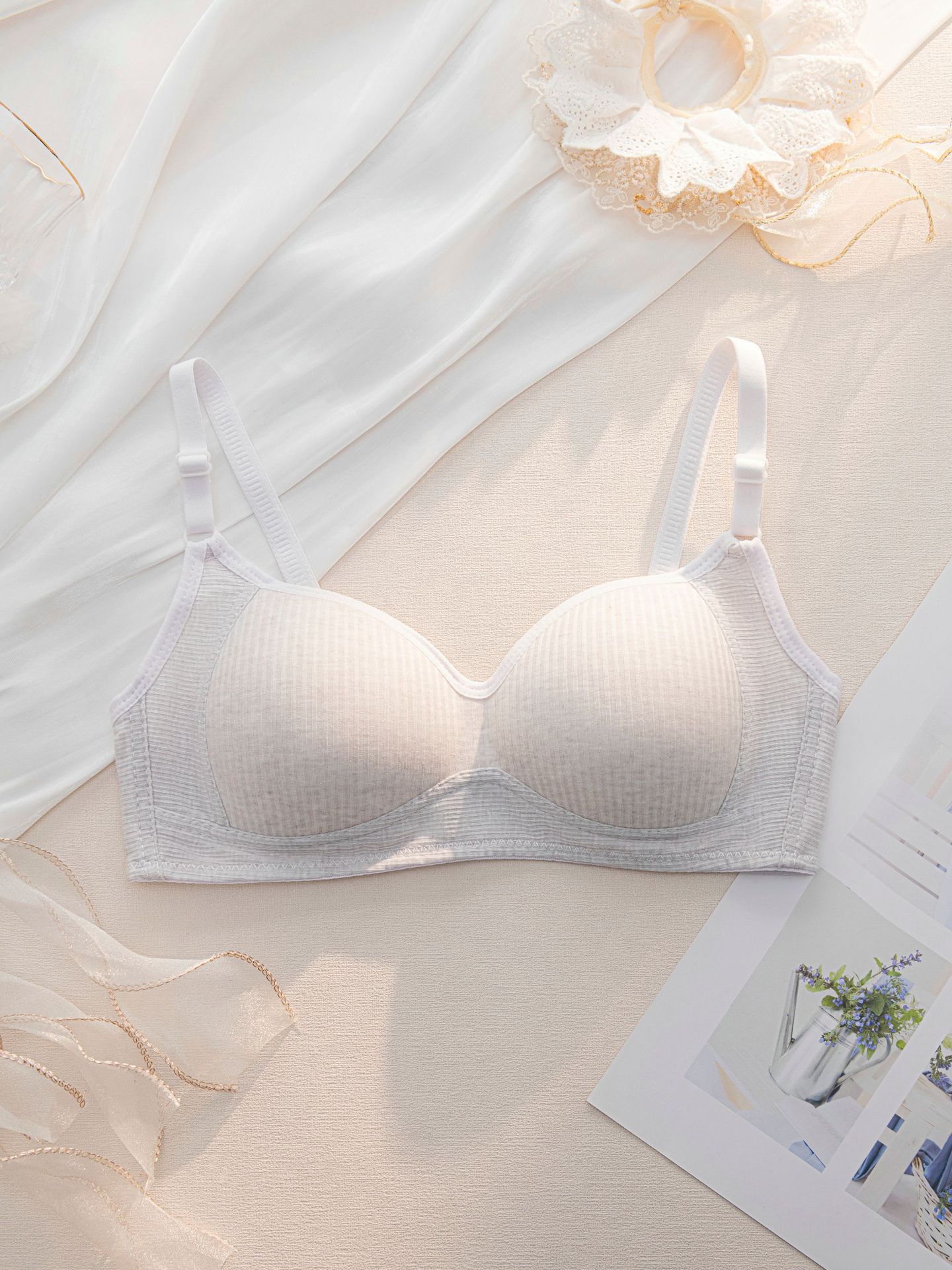 High school adjustable underwear, junior high school student no-wire small chest gathering bra, thin bra for student development girls