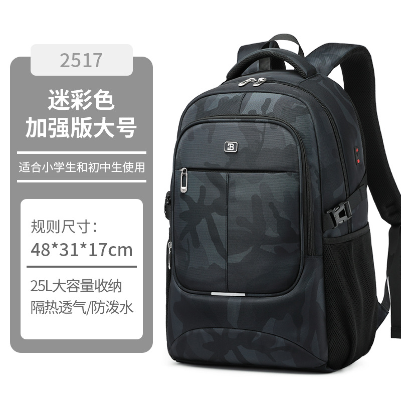 High school and junior high school schoolbags, high school and college students, large-capacity boys' camouflage travel backpacks, high school backpack with reduced burden