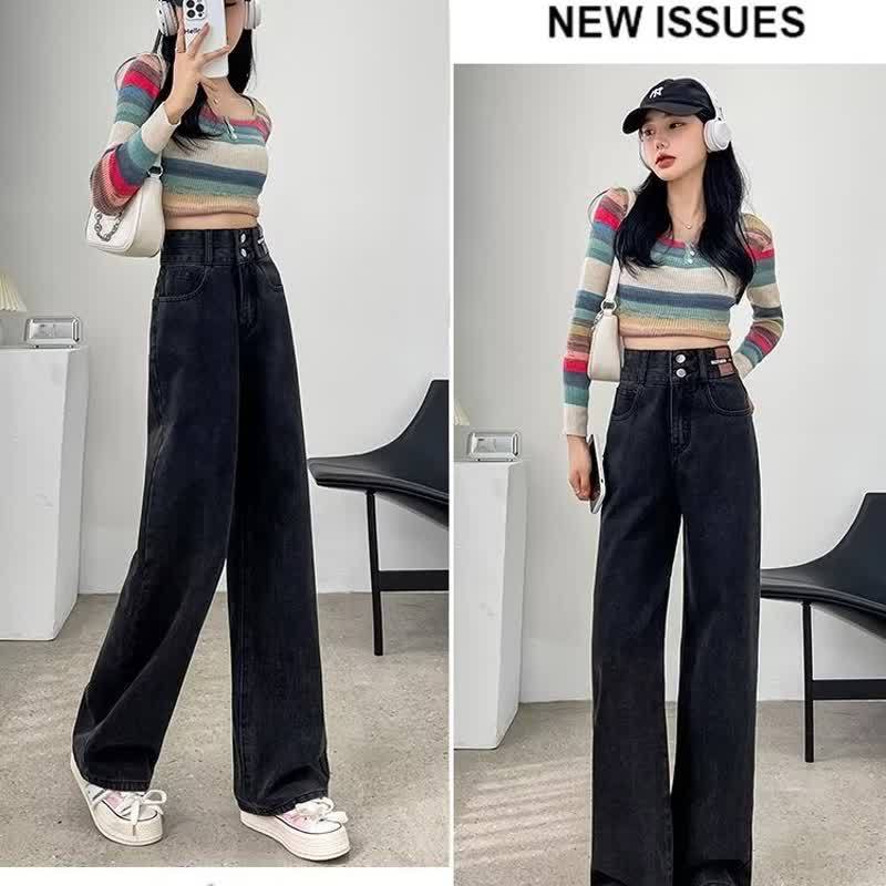 High-waisted wide-leg jeans for women, loose straight-leg, new Spring and Autumn 2025 vintage color, slimming, drape floor-length trousers