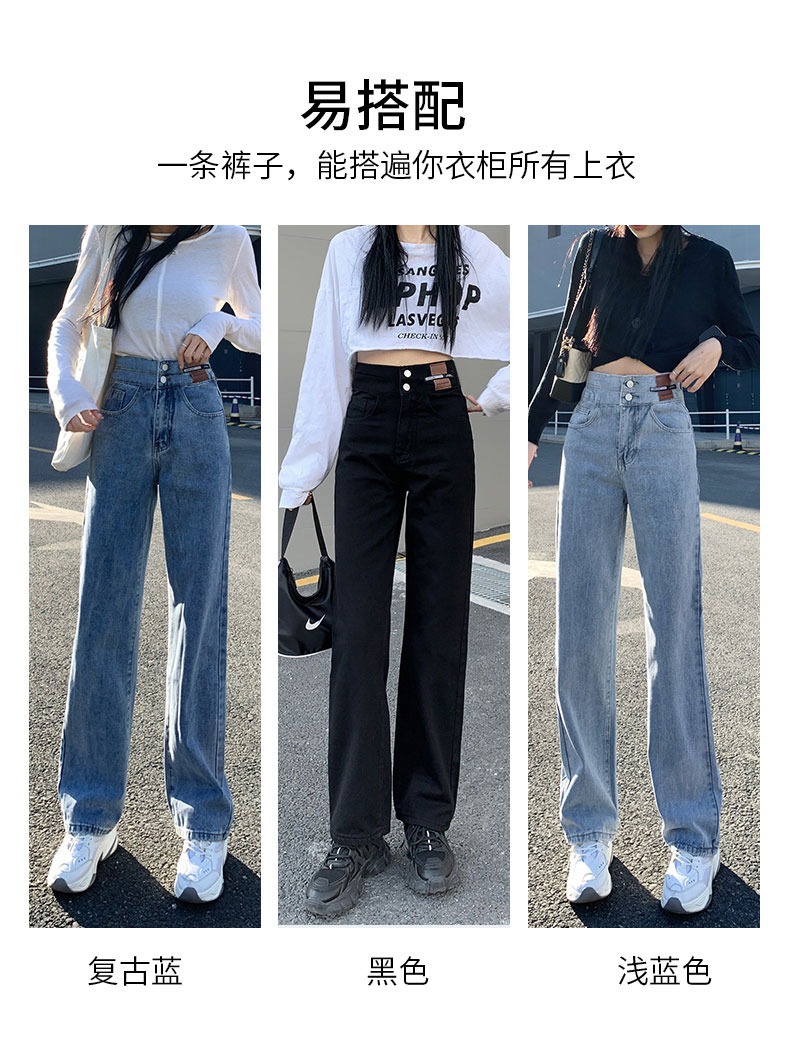 High-waisted wide-leg jeans for women's spring 2026 new style, loose straight-leg, petite slimming, floor-length long pants for spring and autumn