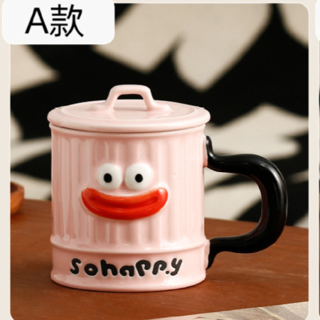 Highly creative and good-looking mugs, cartoon and funny ceramic cups, foreign trade gifts, coffee cups, souvenirs, breakfast cups with LIDS