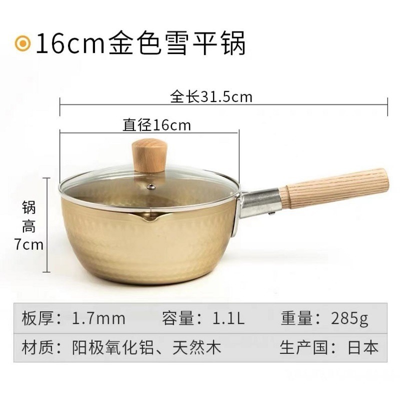 HOKURIKU, a Japanese imported ultra-light aluminum golden snow flat pot, uncoated soup pot, milk pot and instant noodle pot