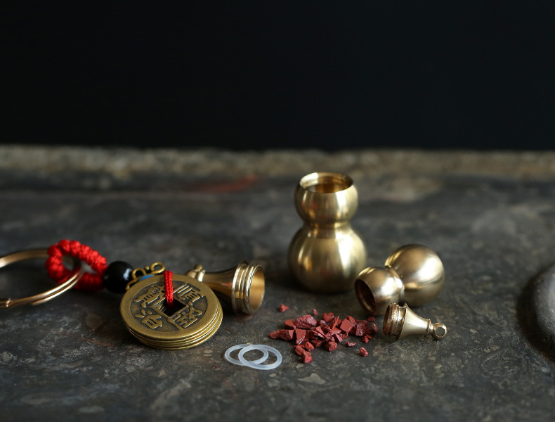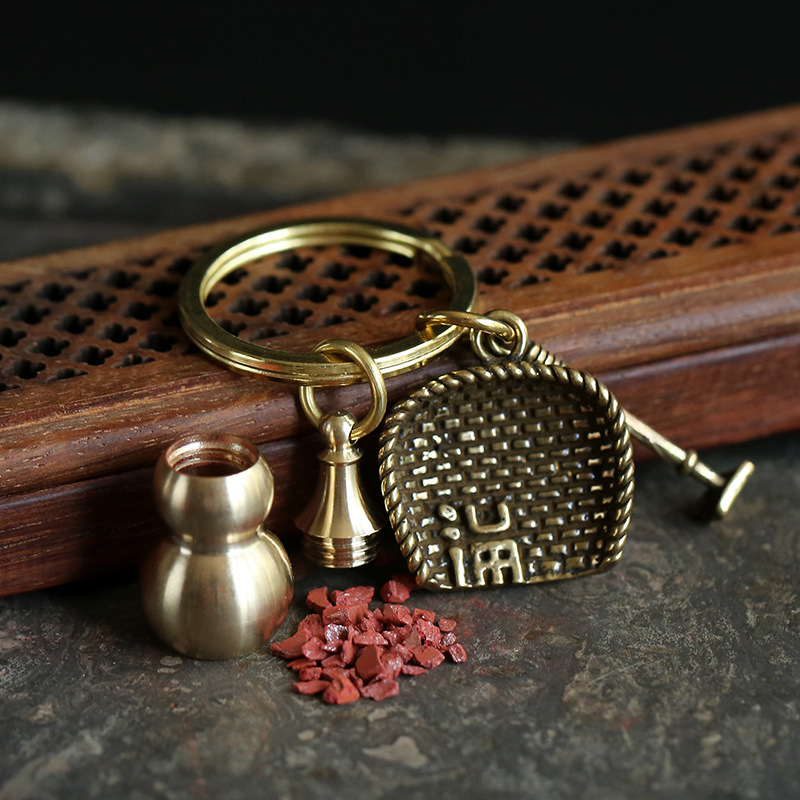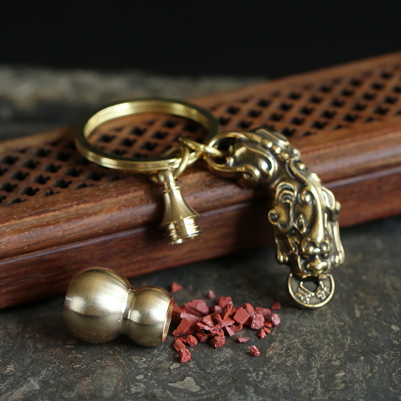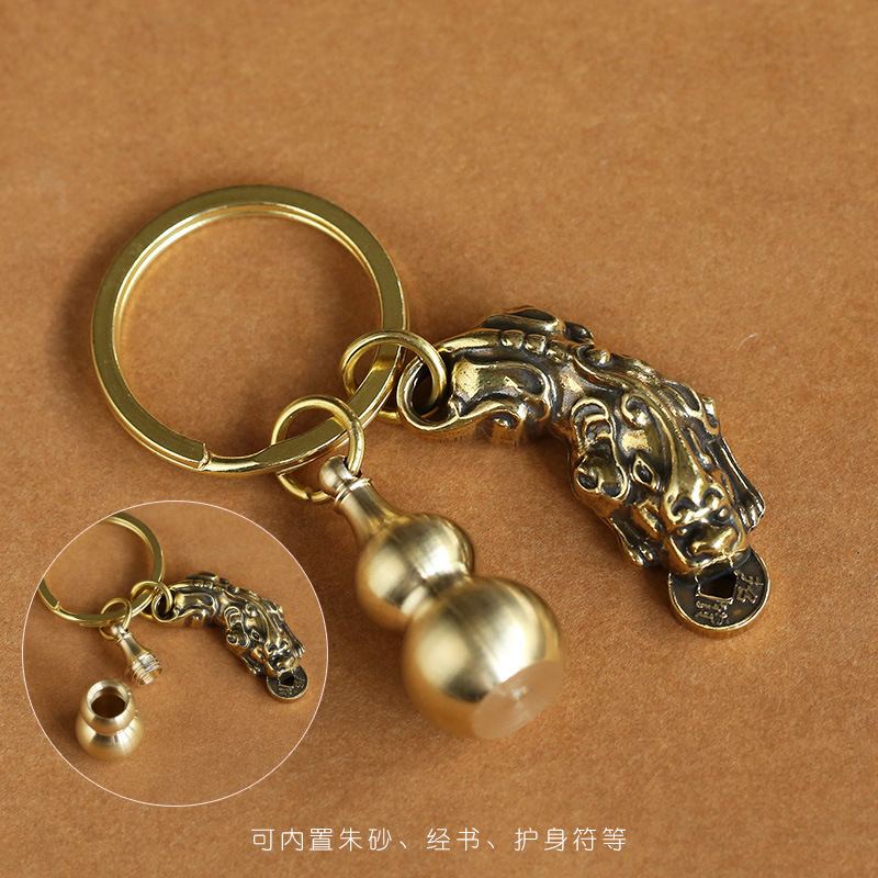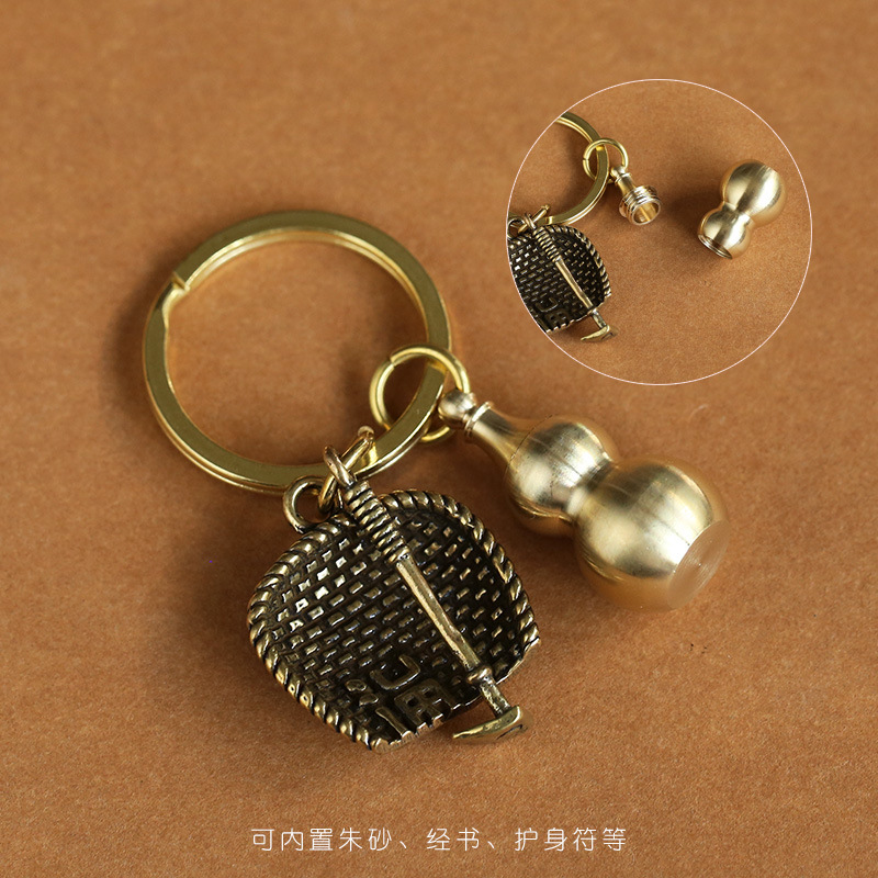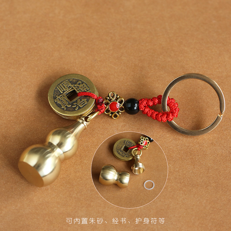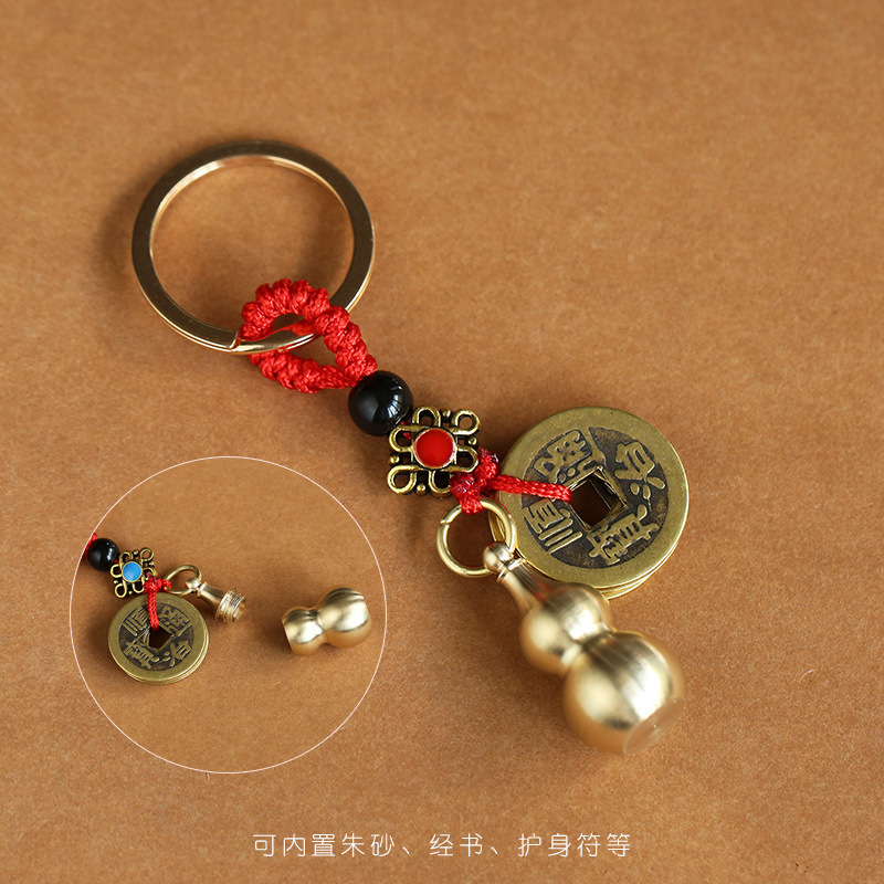 Hollow copper gourds that can hold cinnabar, cinnabar pendants, keychains, zodiac year pendants, men's and women's accessories
