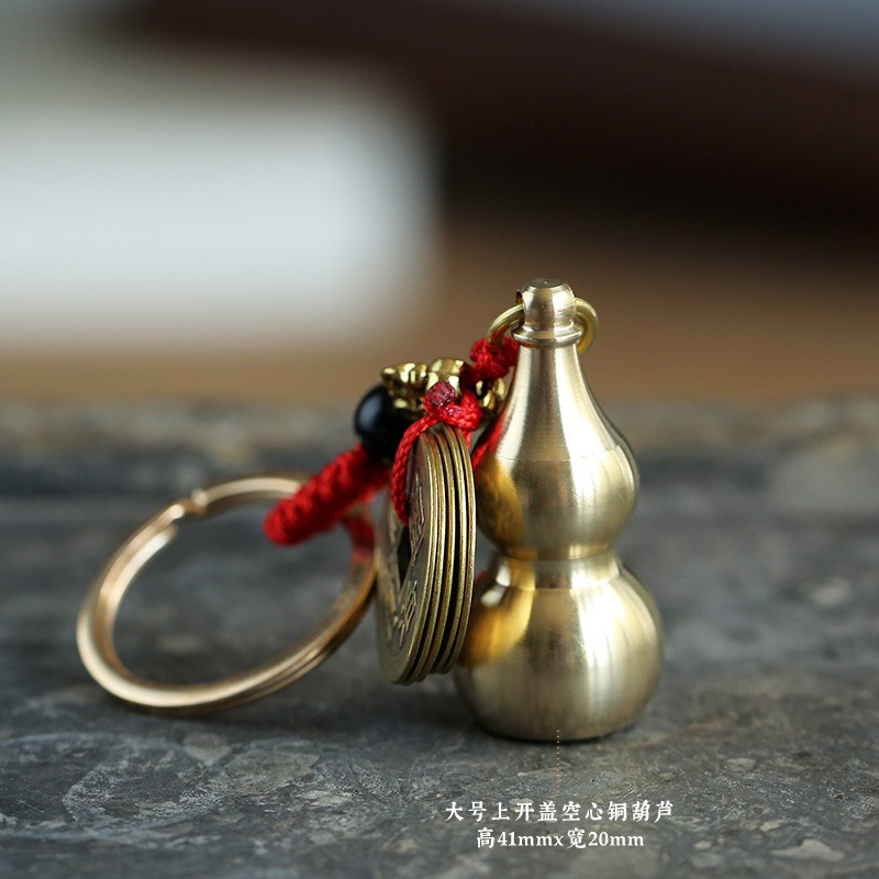 Open-top lid hollow copper gourd Five Emperors coin keychain pendant |