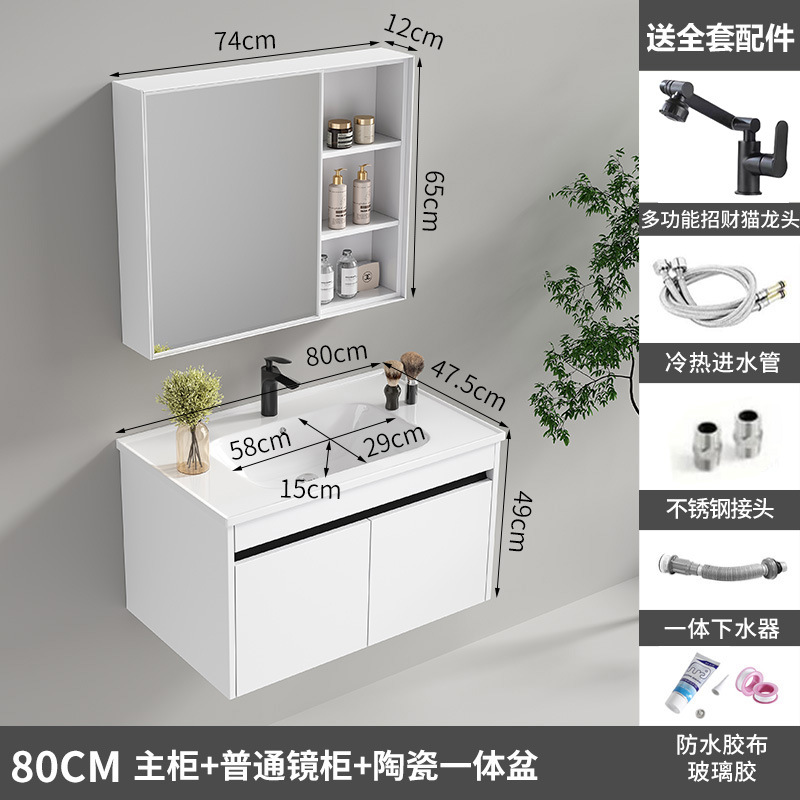 80cm ordinary mirror cabinet, white rock plate ceramic basin [white honeycomb aluminum]