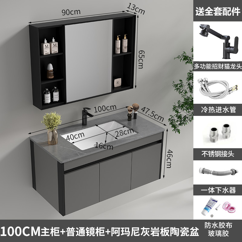 100cm ordinary mirror cabinet with limestone board ceramic basin [Grey honeycomb aluminum]