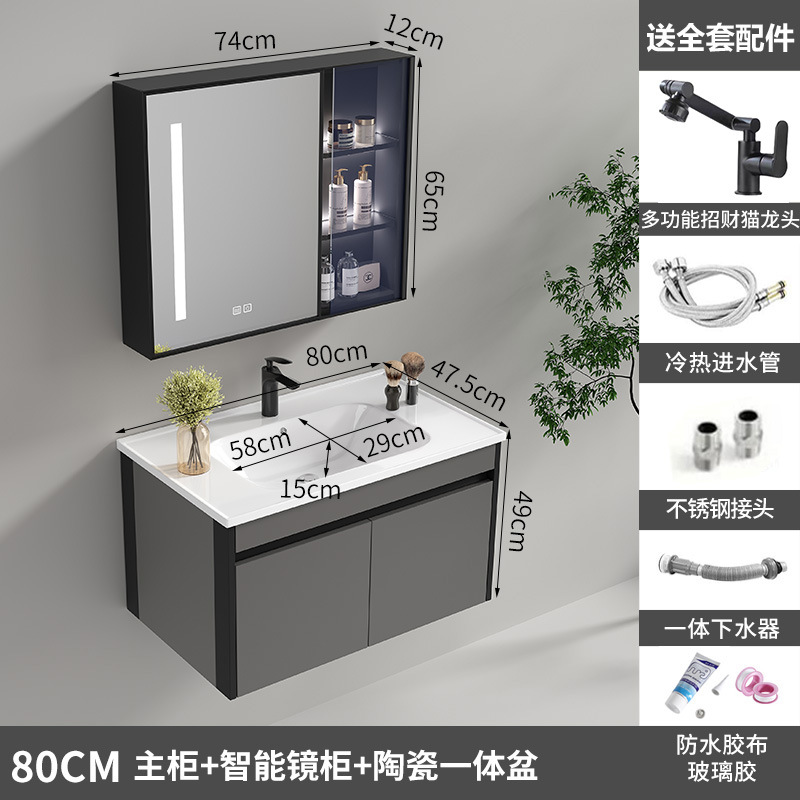80cm smart mirror cabinet Ceramic integrated basin [Grey honeycomb aluminum]