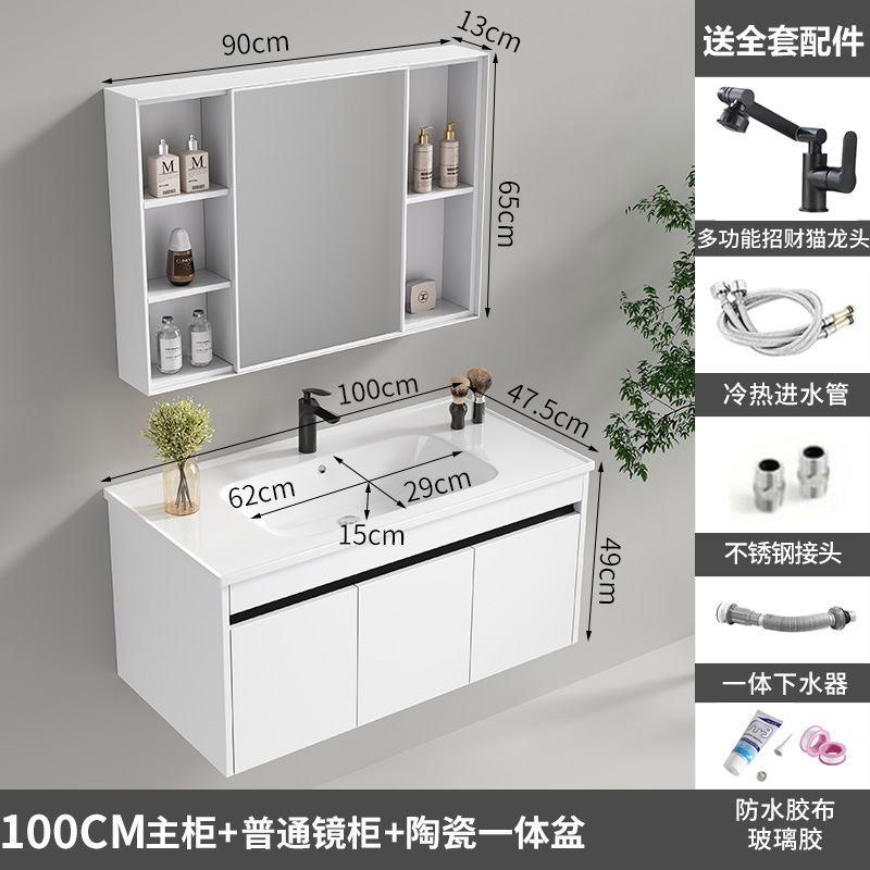 100cm ordinary mirror cabinet ceramic integrated basin [White honeycomb aluminum]