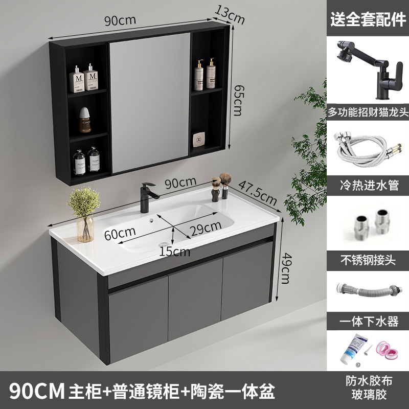 90cm ordinary mirror cabinet ceramic integrated basin [Grey honeycomb aluminum]