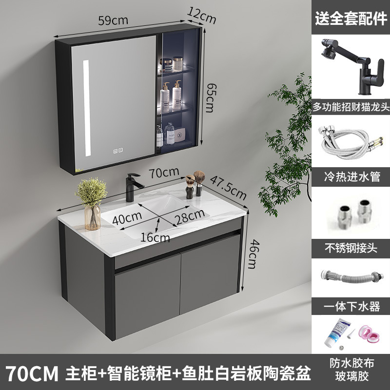 70cm smart mirror cabinet, white rock plate ceramic basin [Grey honeycomb aluminum]