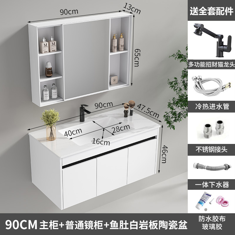 90cm ordinary mirror cabinet, white rock plate ceramic basin [white honeycomb aluminum]