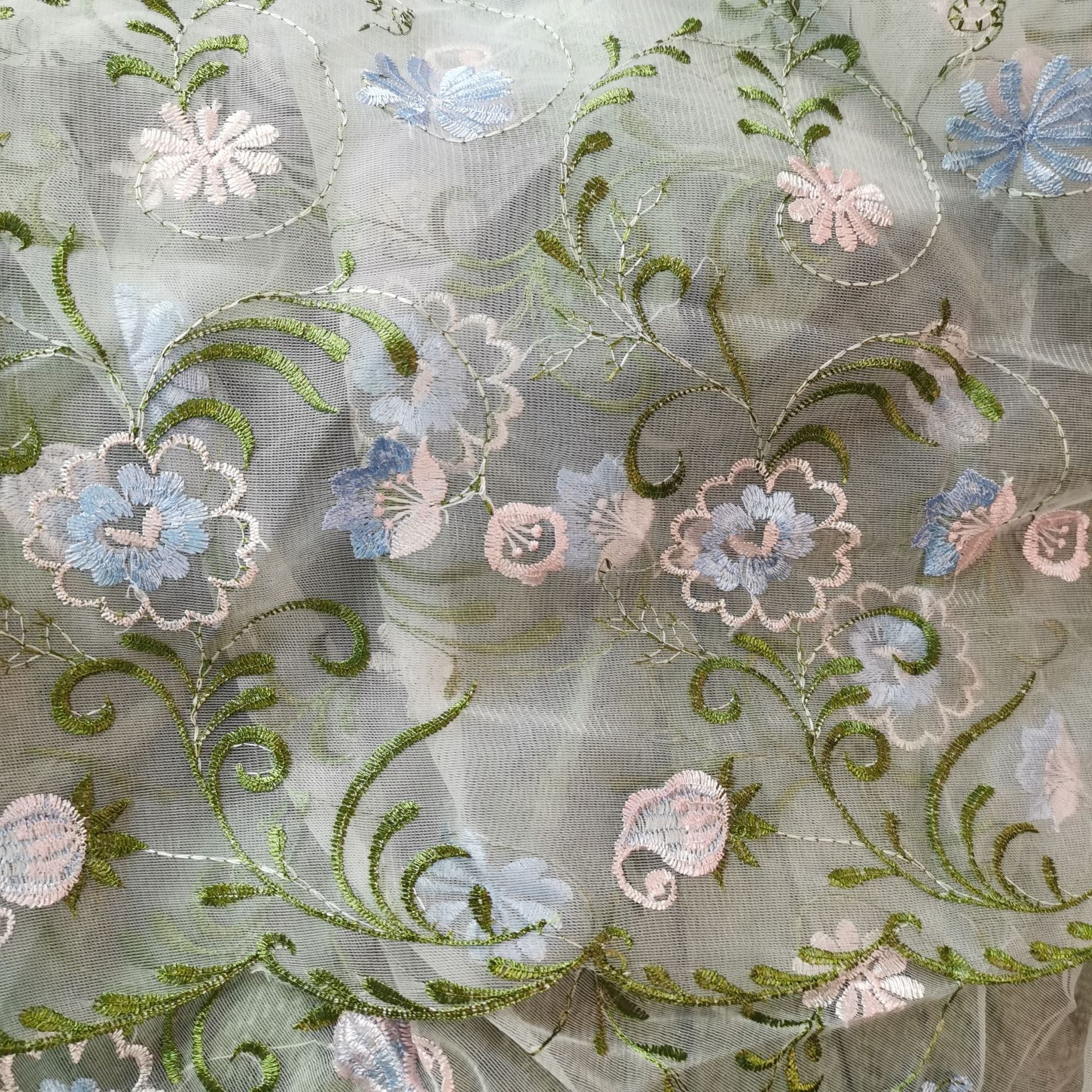 Hongli Technology HLJC-998 Spring/Summer new product Set lace petal embroidery fabric women's clothing Hanfu dress mesh fabric embroidery fabric supports cut rice samples, direct supply and customization in stock
