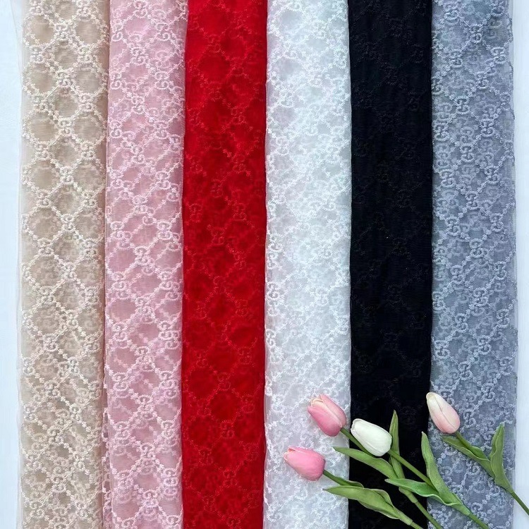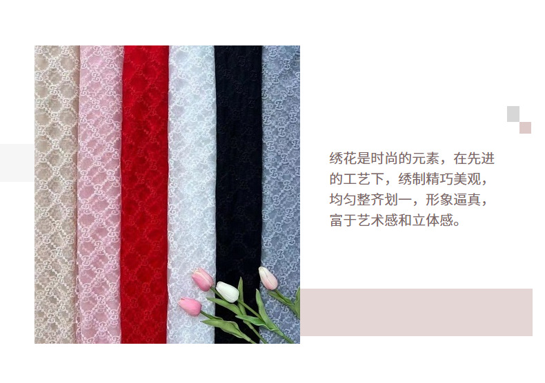 Hongli Technology HLJC-PO112 factory's new export mesh embroidery fabric, photo children's clothing lace fabric, lace edge fabric, upright and inverted G embroidery, supports cut rice samples, immediate delivery and customization