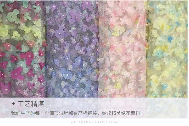 Hongli Technology's 2022 new style mesh gradient three-dimensional embroidered fabric, European and American women's dress and stage dress, Mickey embroidered fabric HLJC-00663