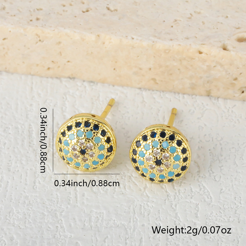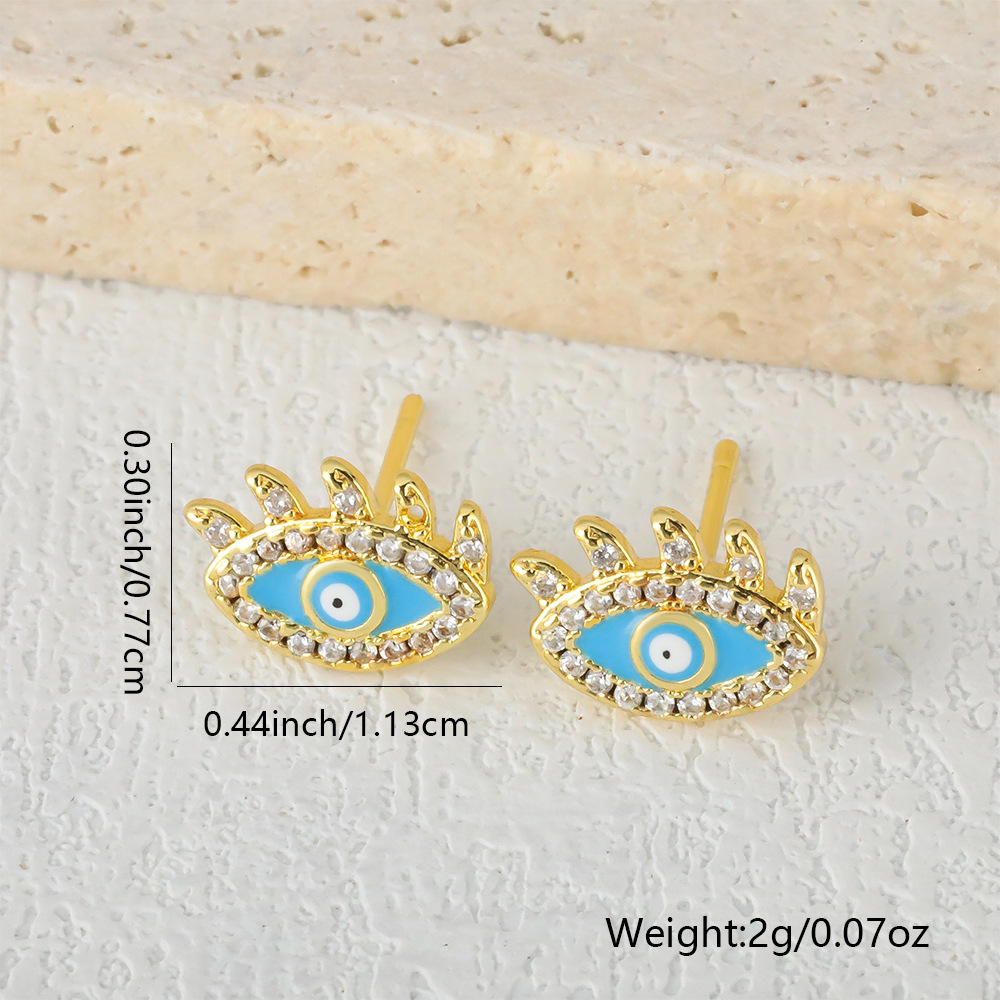 Honglu elegant and exquisite stud earrings, European and American fashion and individuality, zircon oil inlaid geometric Devil's Eye earrings wholesale