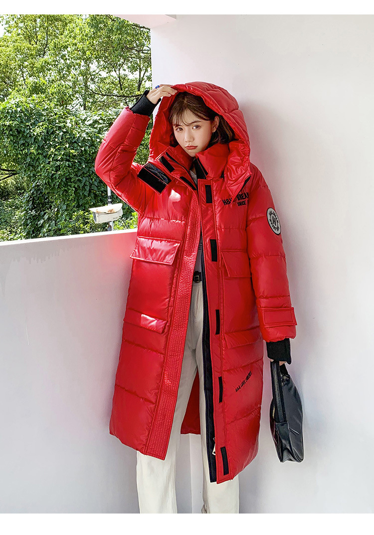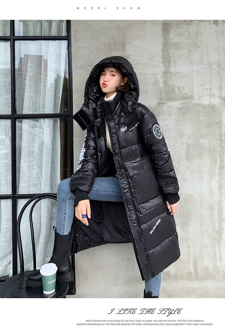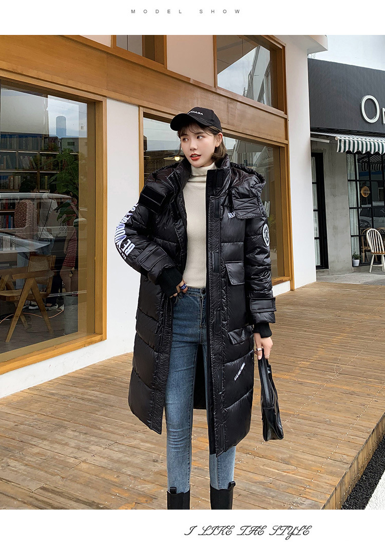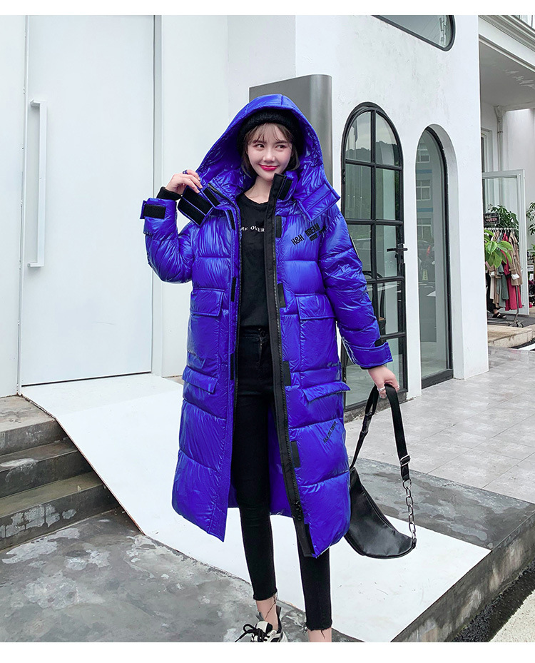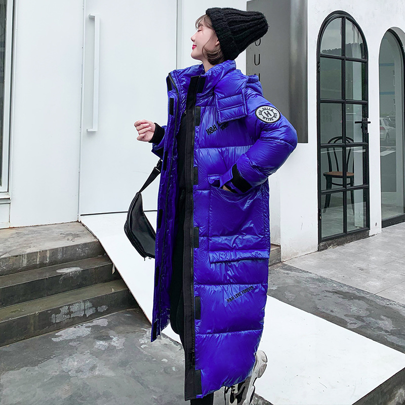Hooded European and American cotton-padded jacket for women's winter, mid-length knee-length thickened bread coat, 2020 new Korean-style shiny cotton-padded jacket