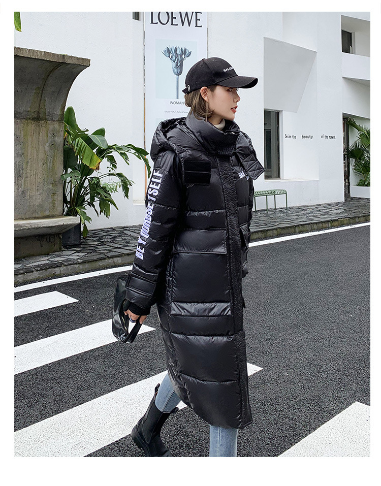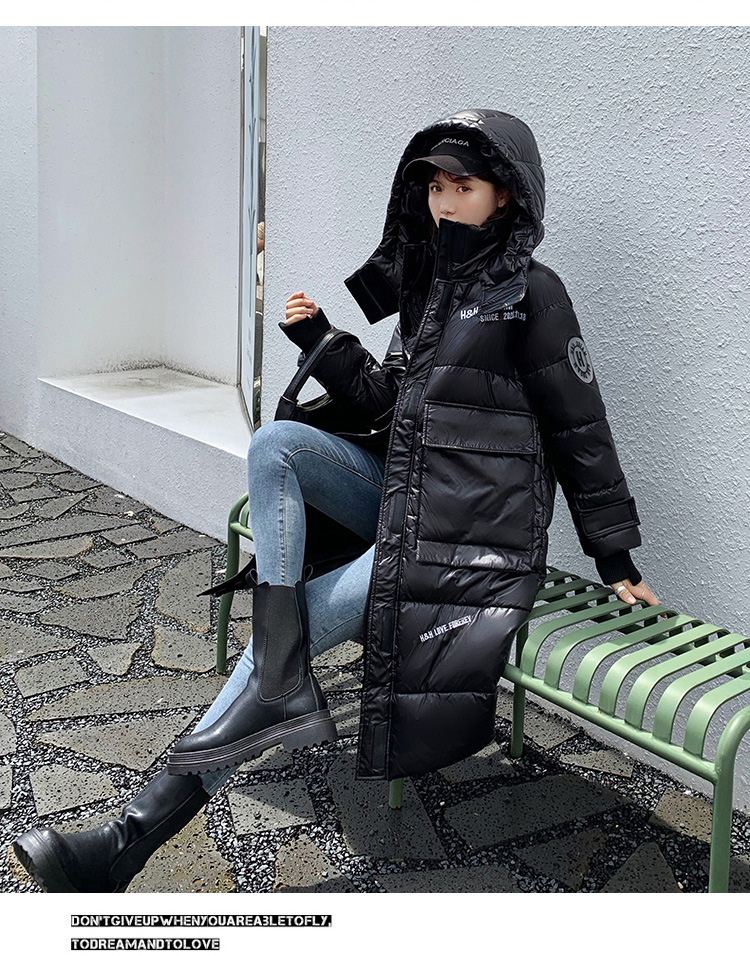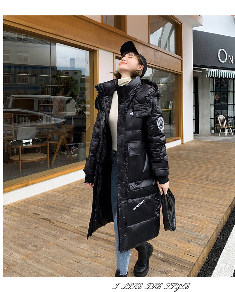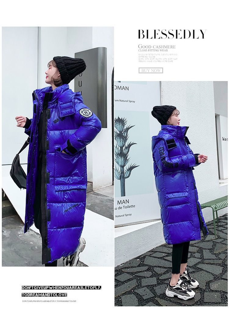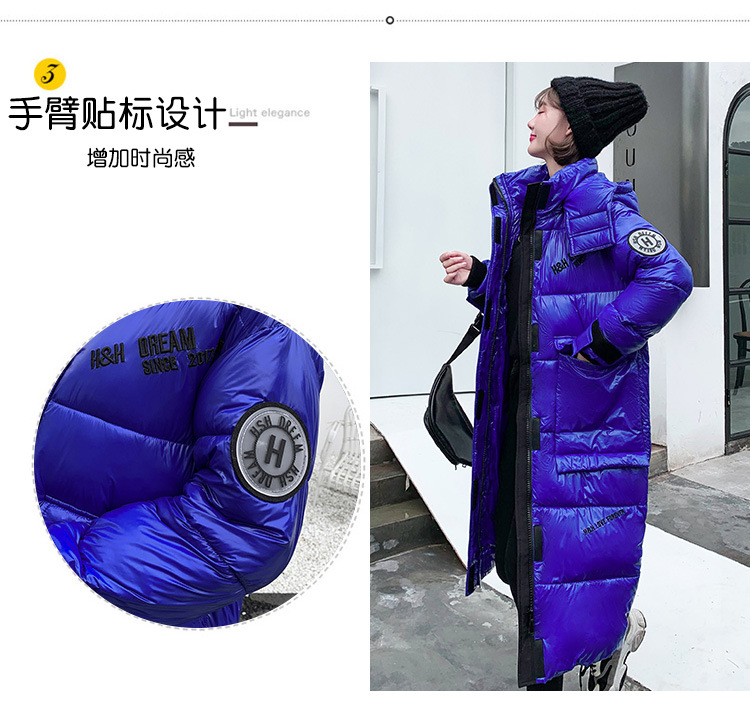 Hooded European and American cotton-padded jacket for women's winter, mid-length knee-length thickened bread coat, 2020 new Korean-style shiny cotton-padded jacket