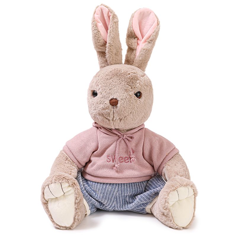 Hoodie, big-eared rabbit doll, cute little white rabbit plush toy, dressing fine cloth doll