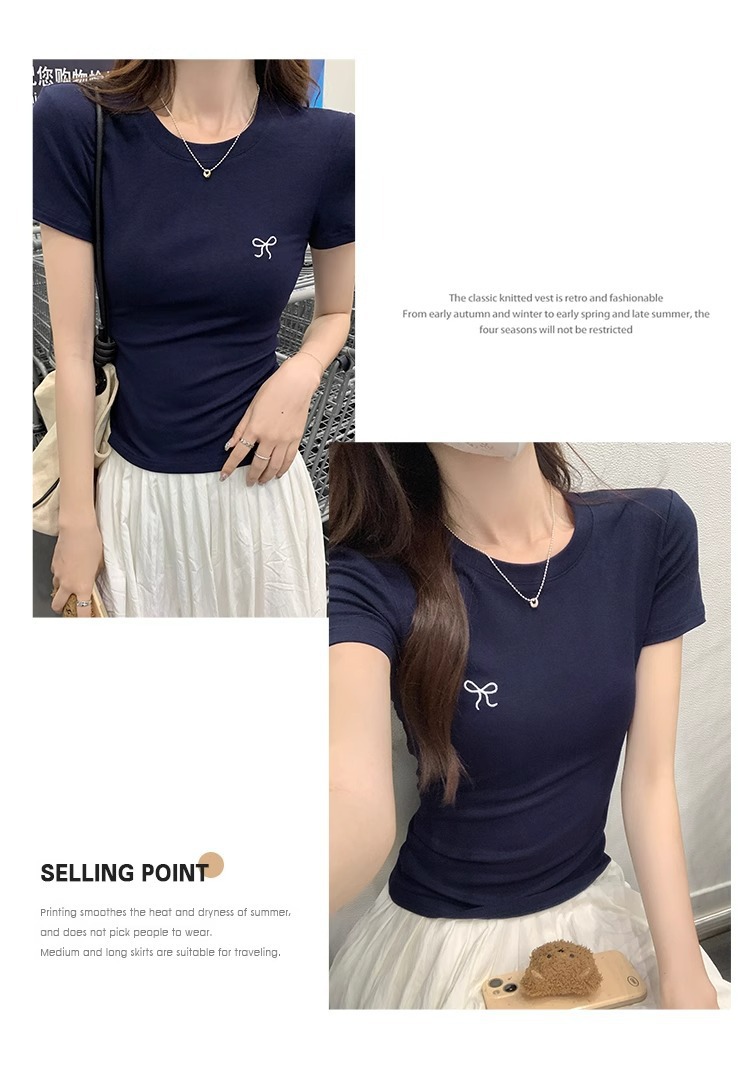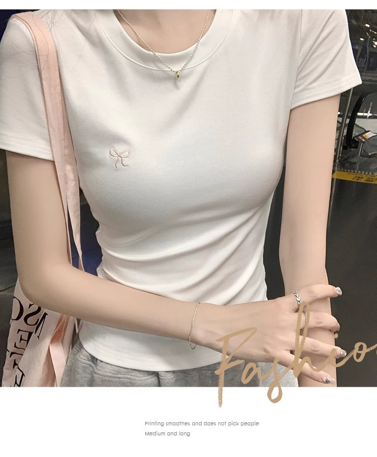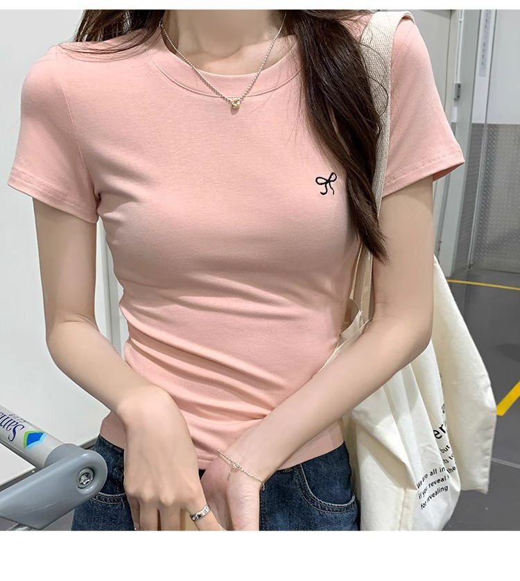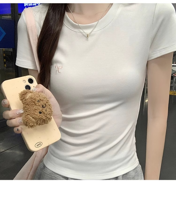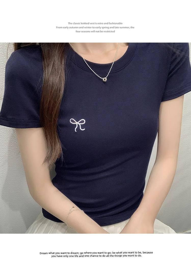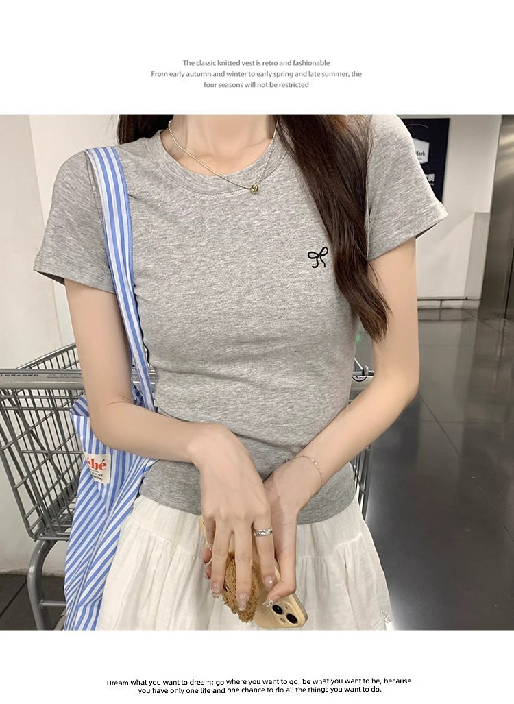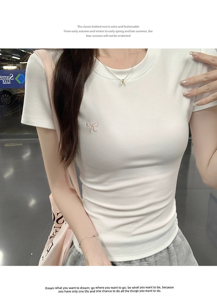 Hot Girl shoulder-length short-sleeved T-shirt for women's summer 2024 new style, revealing figure and pure desire, American-style tight short tea art style top