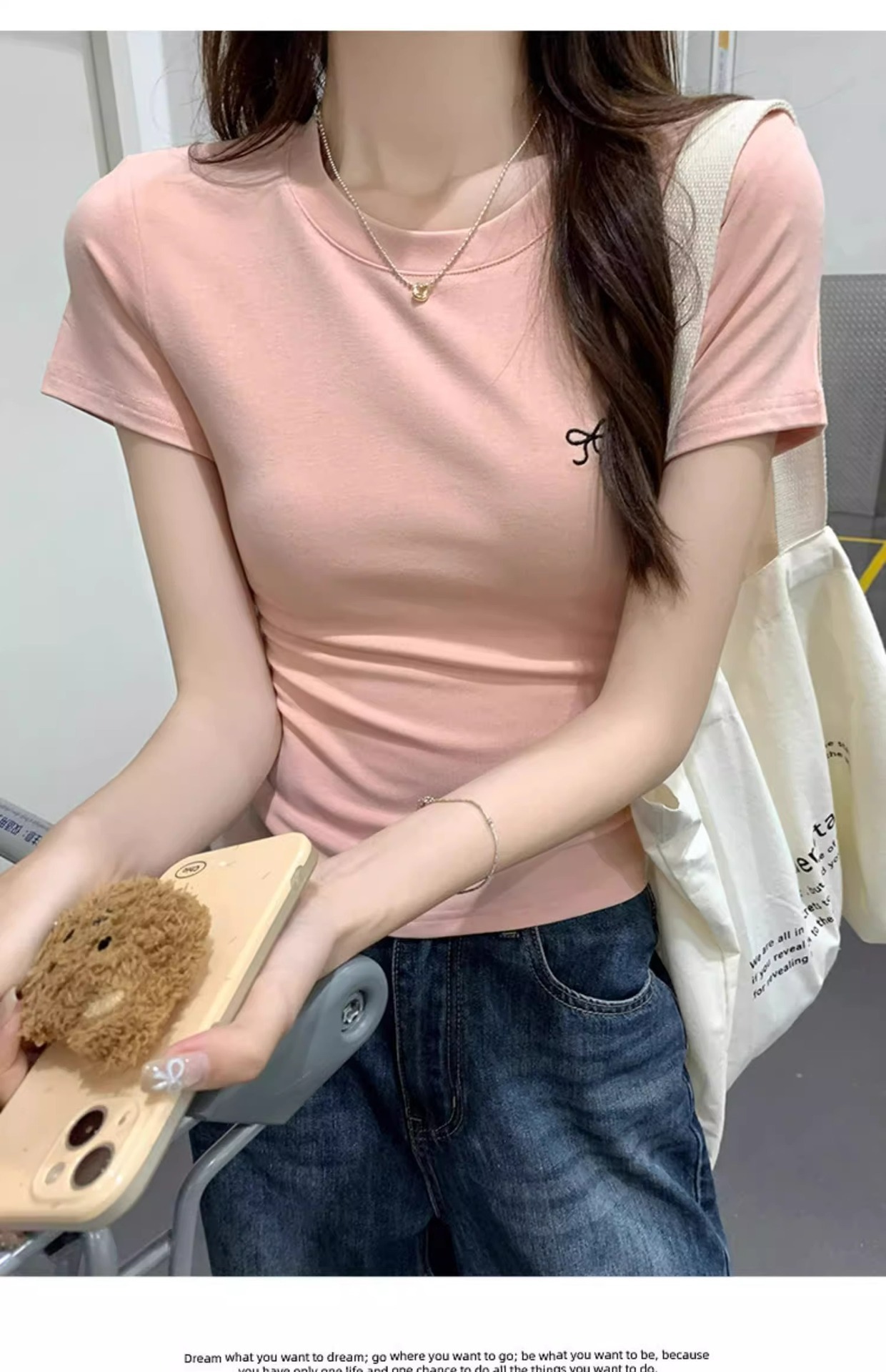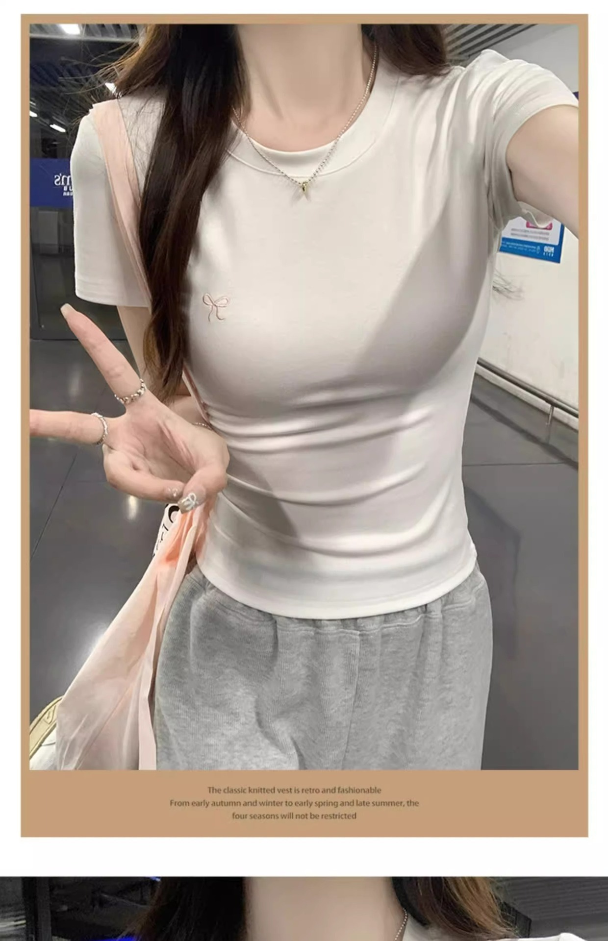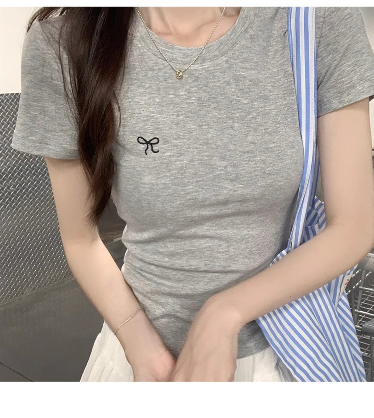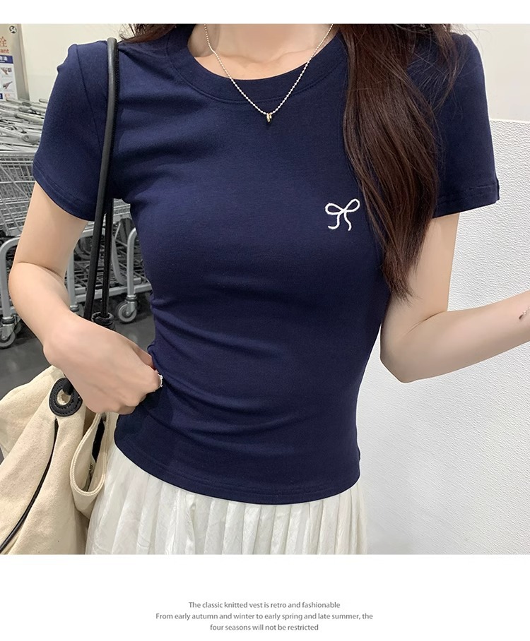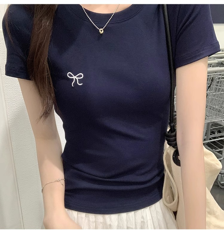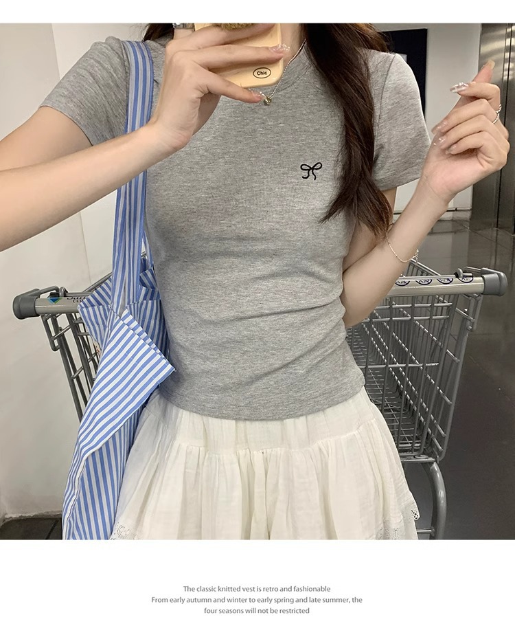 Hot Girl shoulder-length short-sleeved T-shirt for women's summer 2024 new style, revealing figure and pure desire, American-style tight short tea art style top