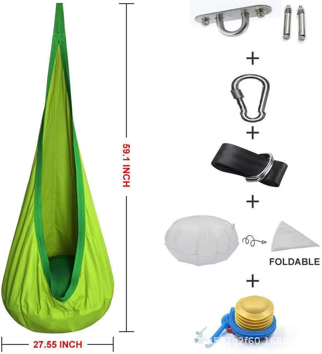 Includes (bag swing, inflatable seat cushion, air pump, binding strap, gourd buckle, hanging plate expansion screw storage bag)