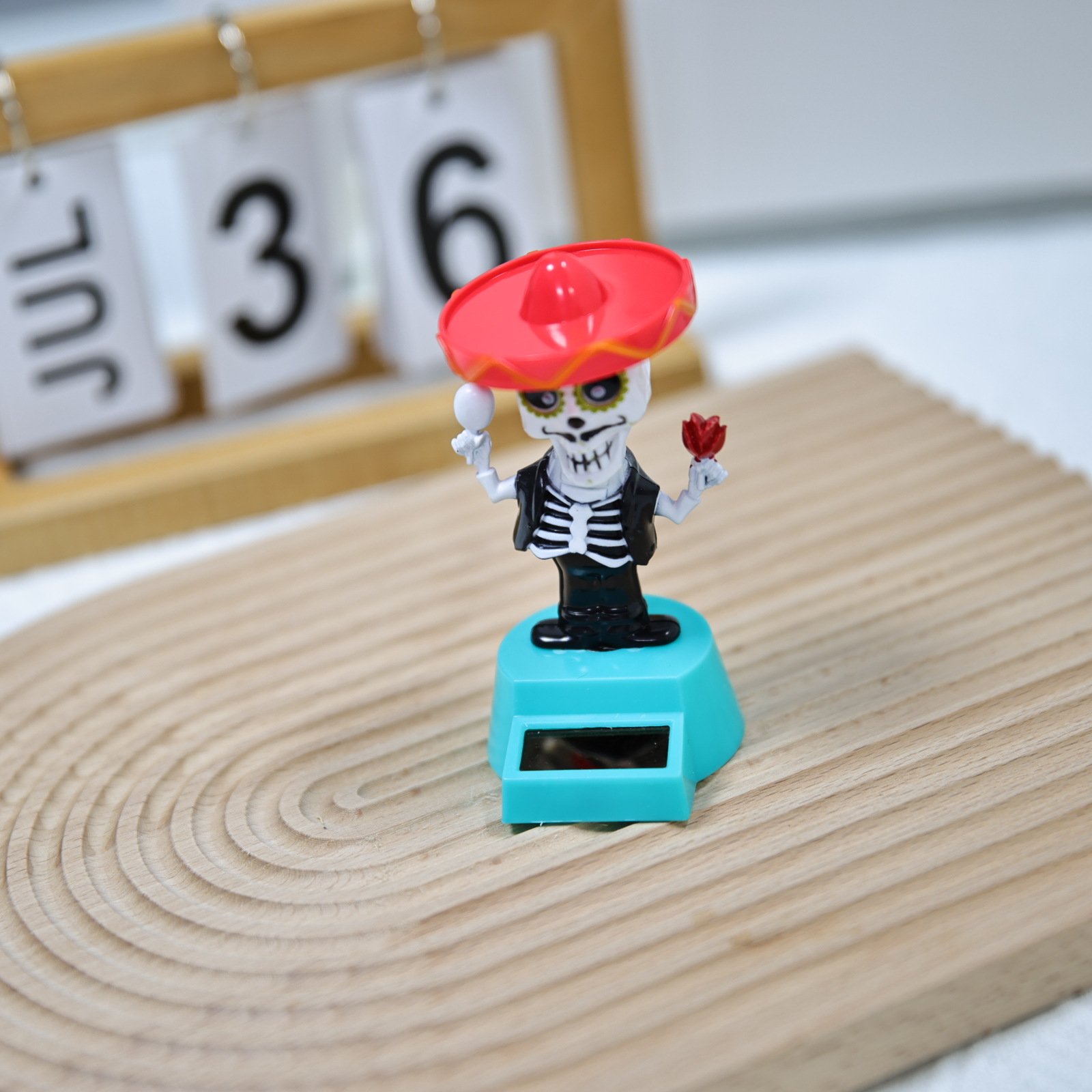 Hot-selling Halloween gifts: Solar-powered creative shaking head car figurines, hat skull dolls. Wholesale and consignment available