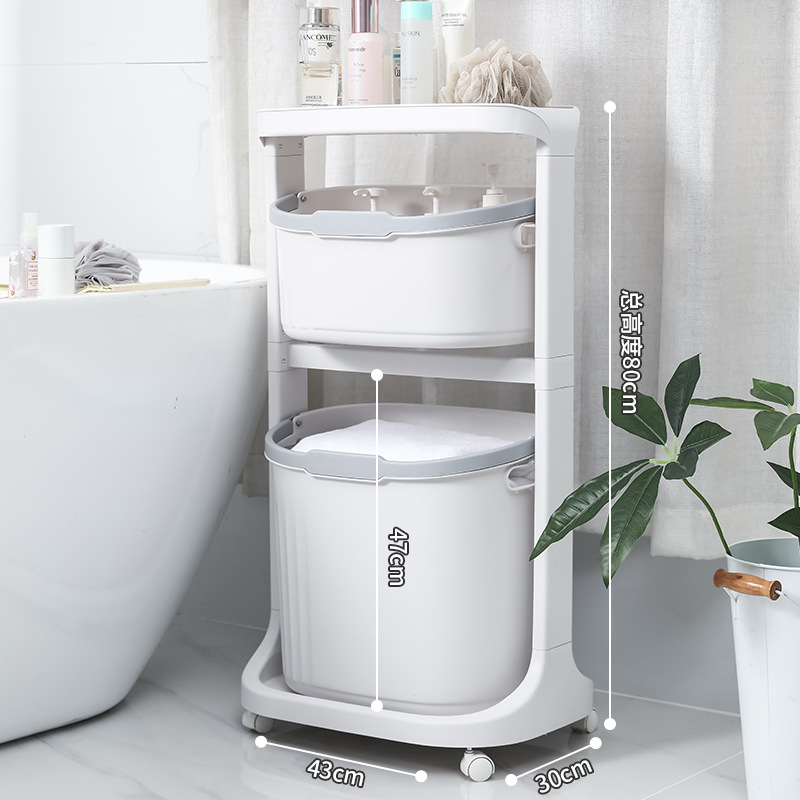 Household bathroom multi-layer organizing and storage rack with wheels, rotating bathroom floor-standing storage basket, multi-functional laundry basket