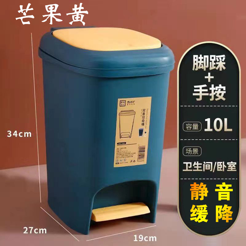 Household covered foot pedal silent slow-lowering trash can, large-capacity kitchen hand-press type non-dirty hands, office trash can