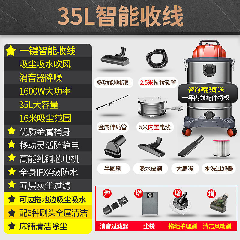 Household high suction power 1600W small car portable handheld 25L35 bed, sofa and carpet vacuum cleaner