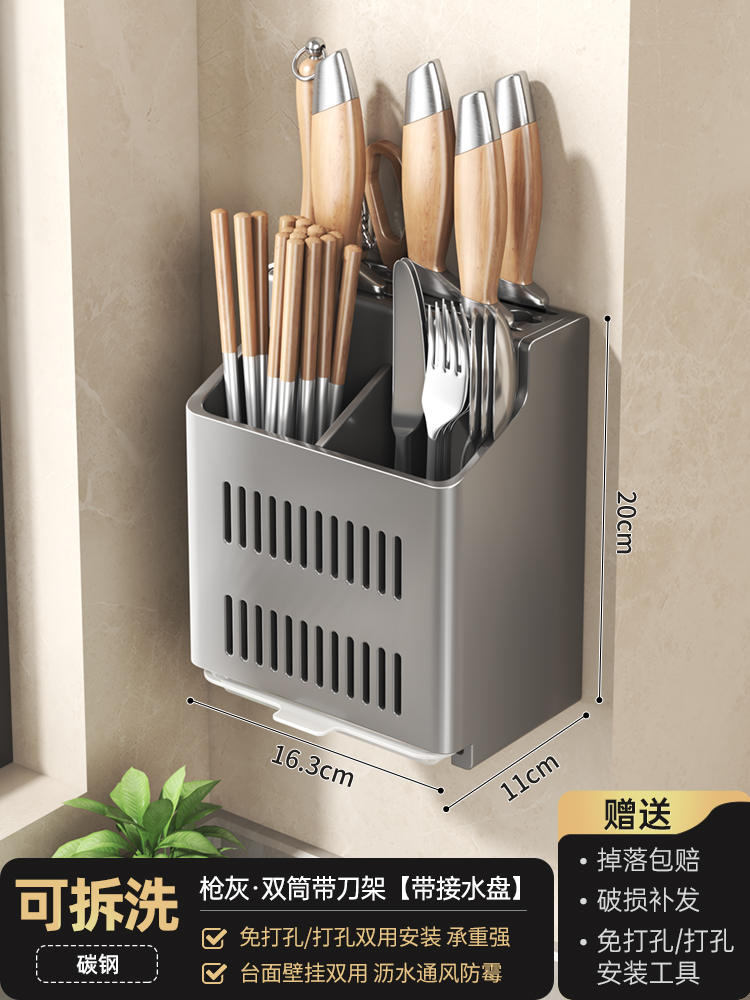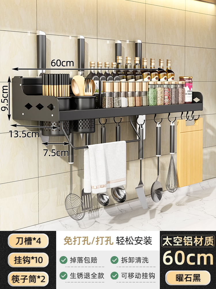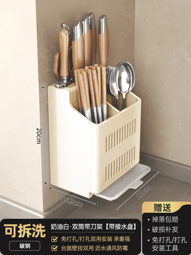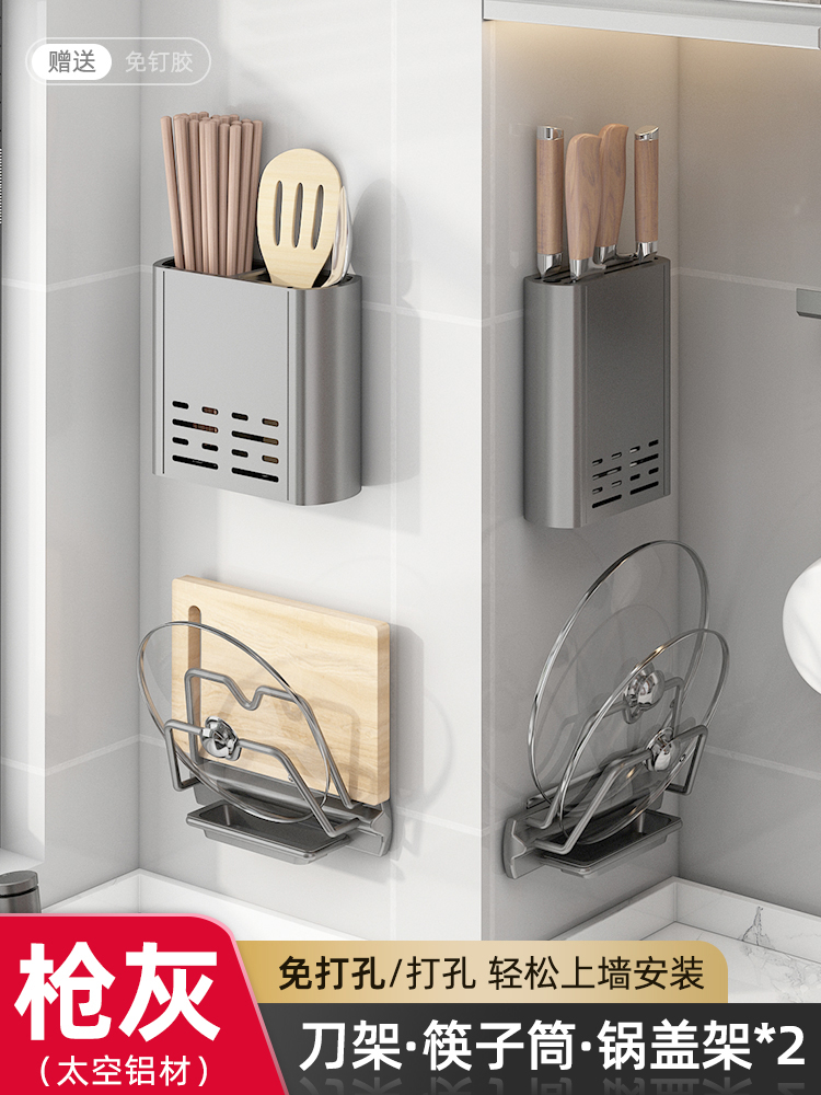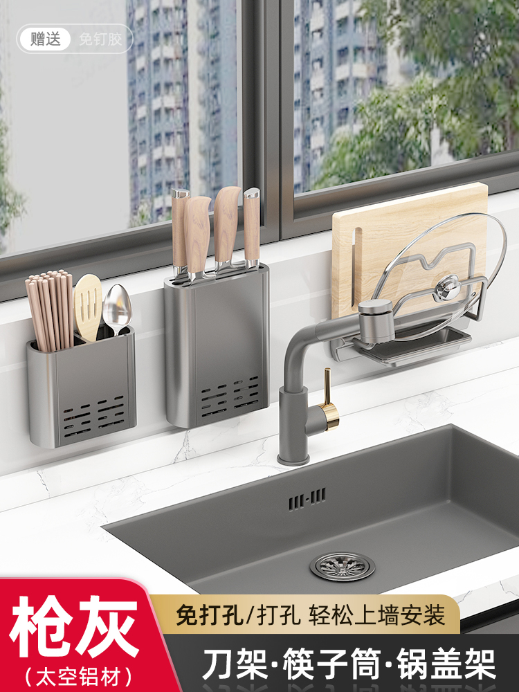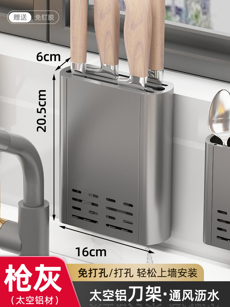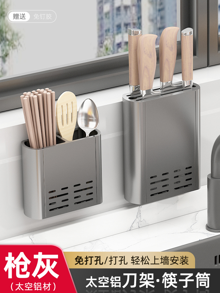 Household kitchen wall-mounted ventilation and drainage storage rack, multi-functional knife rack, non-drilling storage rack, chopstick holder