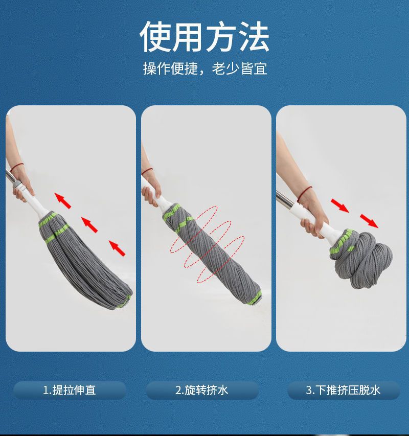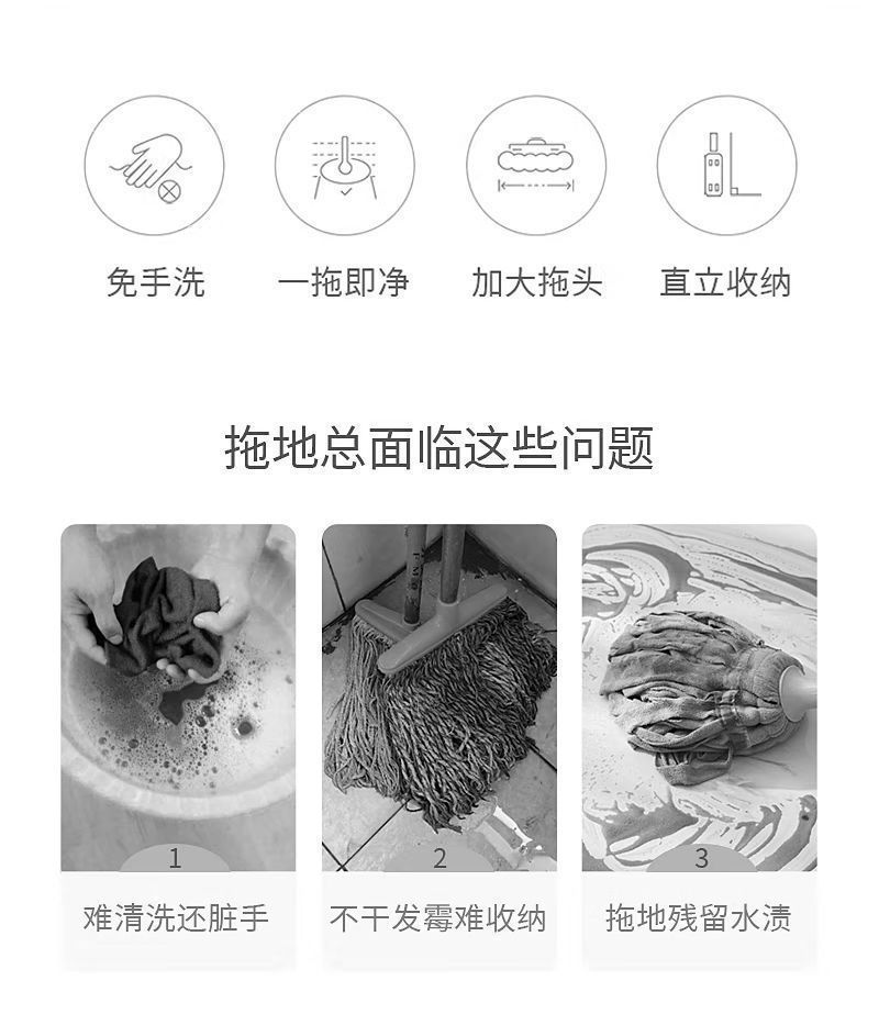 Household mop, no need for hand washing, self-wring water mop, lazy person's mop, dry and wet dual-purpose mop, absorbent mop