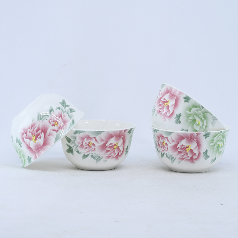 Household wholesale bone China tableware, 10 sets of decals, single rice bowl, household ceramic bowl, suitable for microwave oven